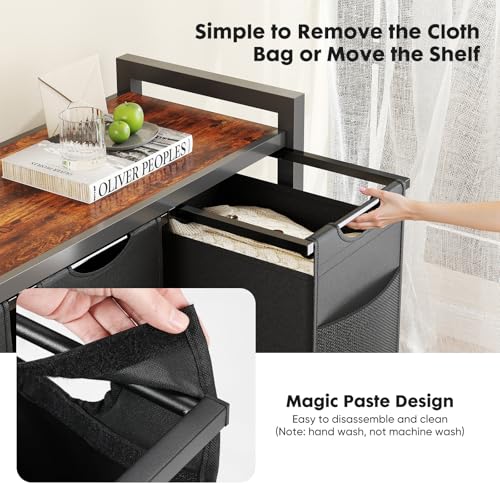 Sweetcrispy Laundry Hamper with 2 Pull-Out Removable Sorter Bags 2 × 13.1Gal (99L) Capacity, Movable Wheels, Freestanding Clothes Basket Organizer in Bathroom, Rustic Brown and Black