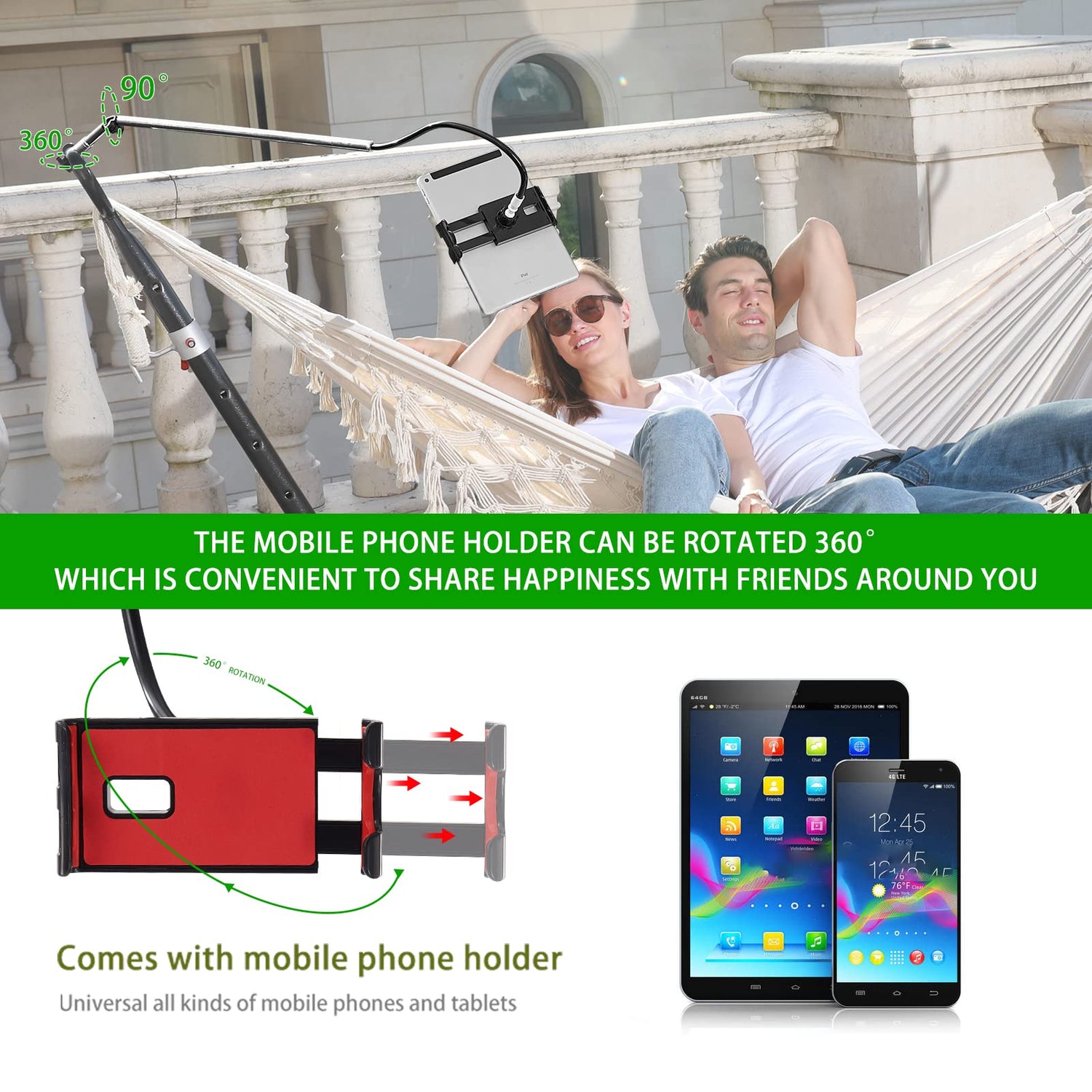- ✅【 Intelligent design 】 The new smiley hammock bracket is equipped with a lazy mobile phone bracket, which can clip tablets and mobile phones and quickly liberate hands. The mobile phone stand can rotate 360 degrees, which is convenient for sharing happiness with friends around. Watch movies, live stream, read, relax and rest. The phone holder can be easily retracted and does not take up space when idle.