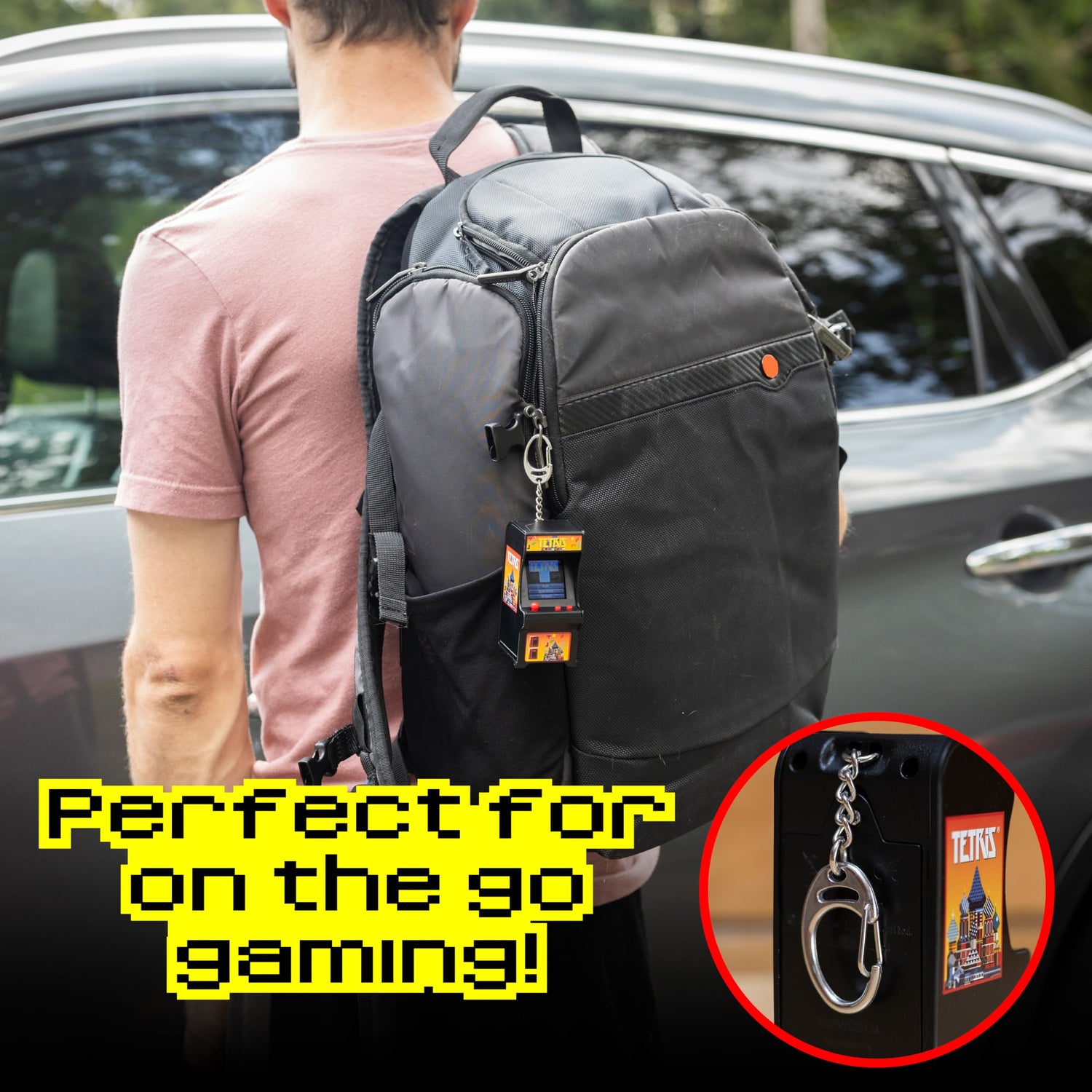 - Tetris thrills in a mini arcade – perfect for on-the-go play! The Tiny Arcade Tetris the perfect size for on-the-go gaming! There's a keychain included to attach to bags, backpacks, or add to your retro video game collection.