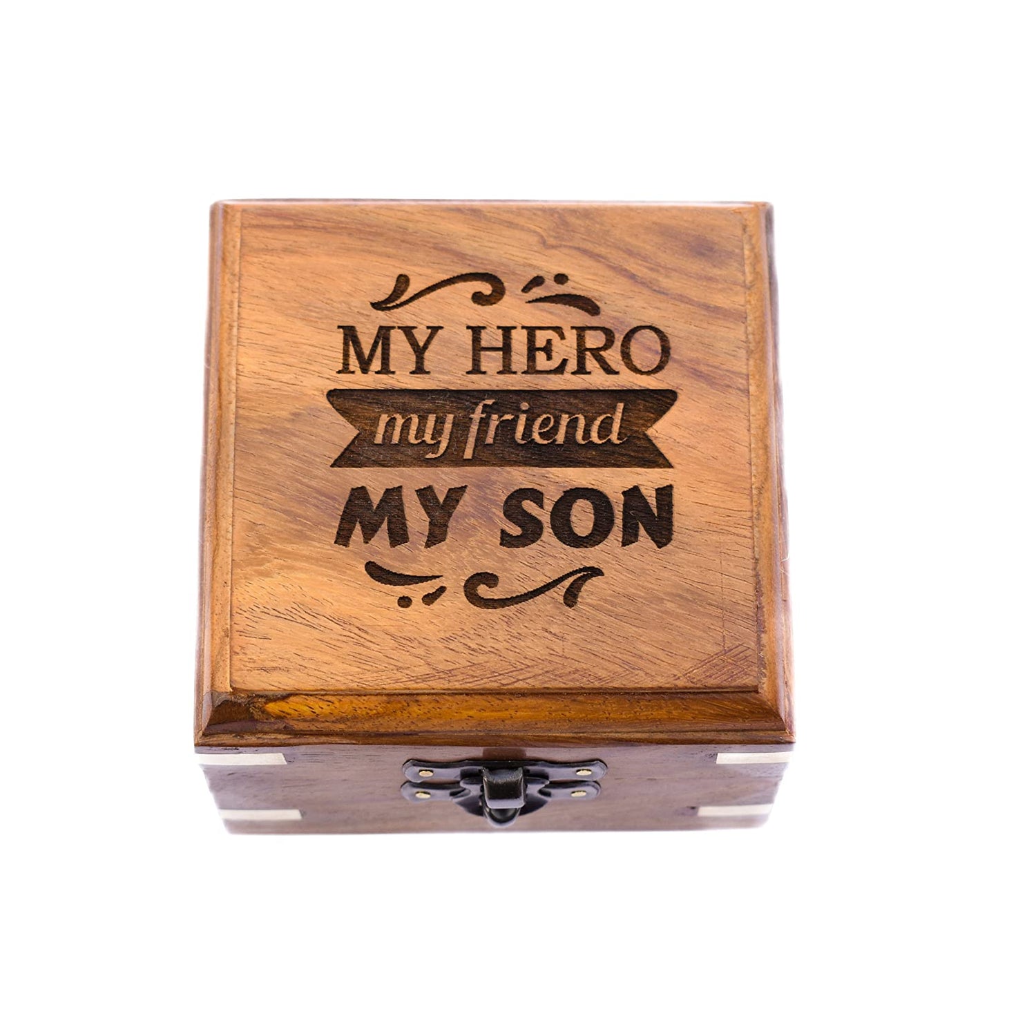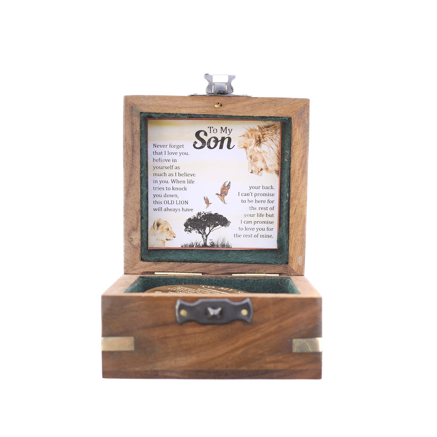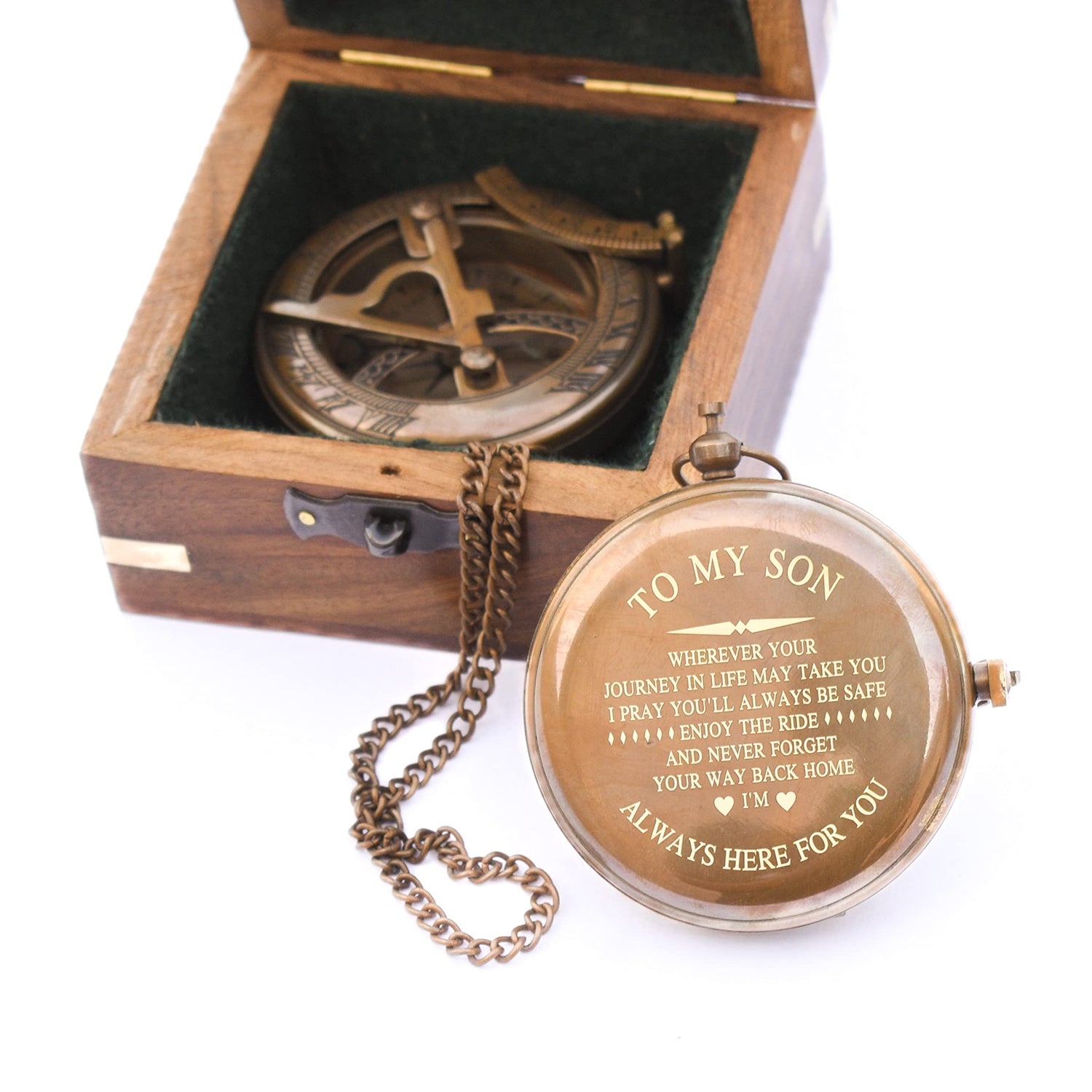 to My Son Compass - Personalized Sundial Compass with Case | Unique Gift for Son, Dad to Son Gift, Mom to Son Gift, Grandson Gift | Pocket Compass with Inspirational Engraving (Wooden Case)