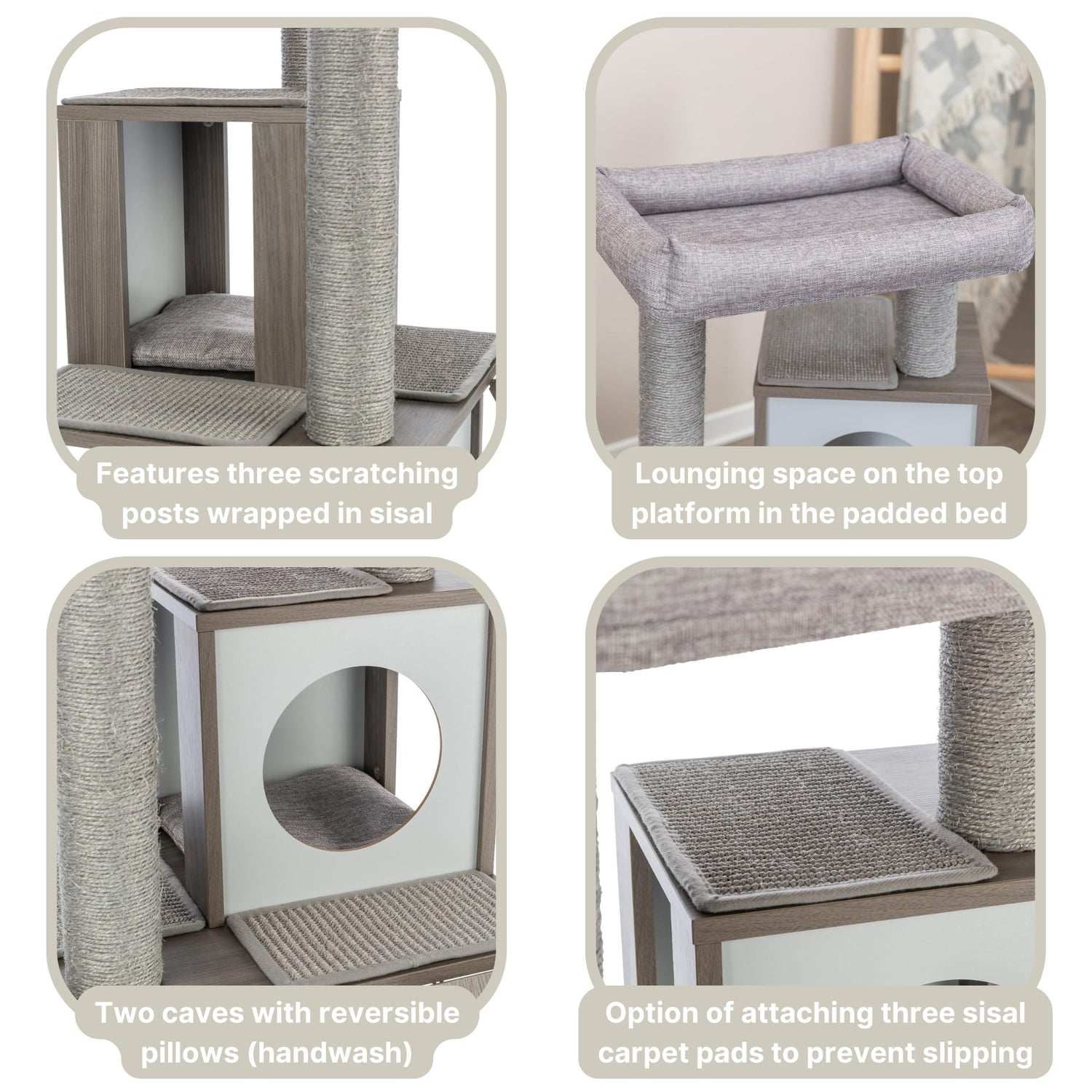 TRIXIE Mali 34-in Cat Tree, Modern Wood Cat Tower, Sisal Scratching Posts & Pads, 2 Condos, Sisal Ramp, Cozy Bed