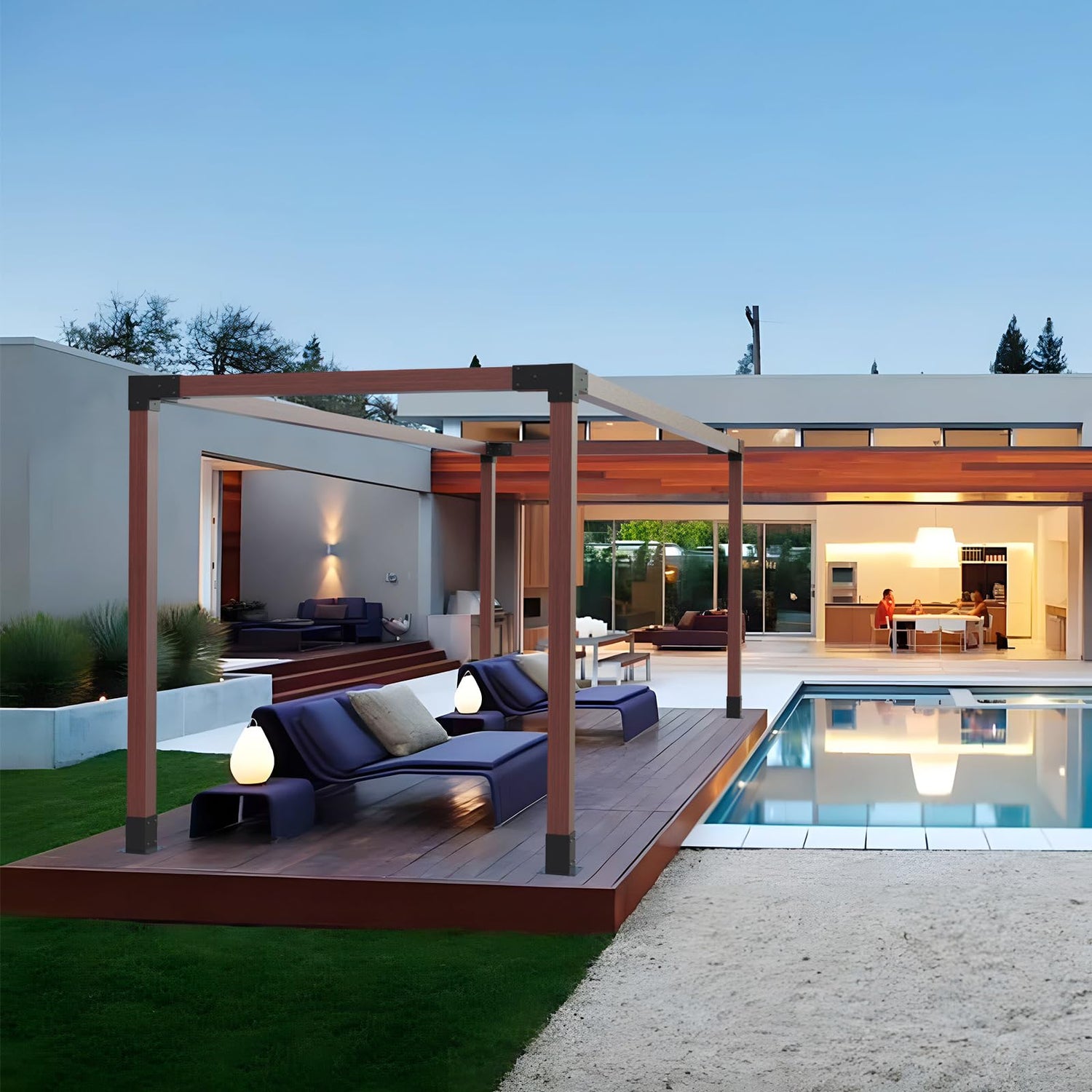 - DIY PERGOLA KIT -- Assemble your own pergola in less than 1 day and at a fraction of the cost of competing products. This product is recommended for the DIYer who wants a modern looking pergola!The heavy steel braces are strong and stabilizing.