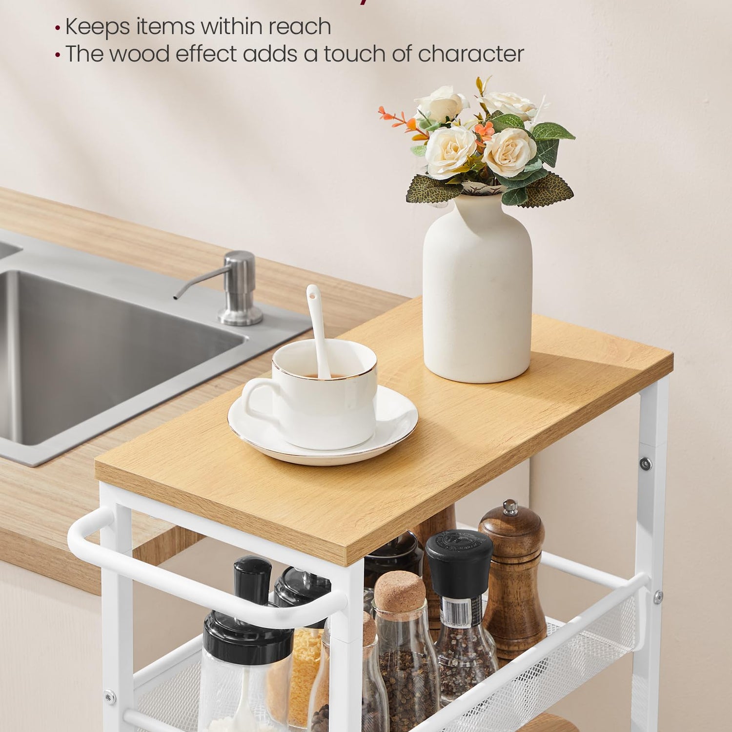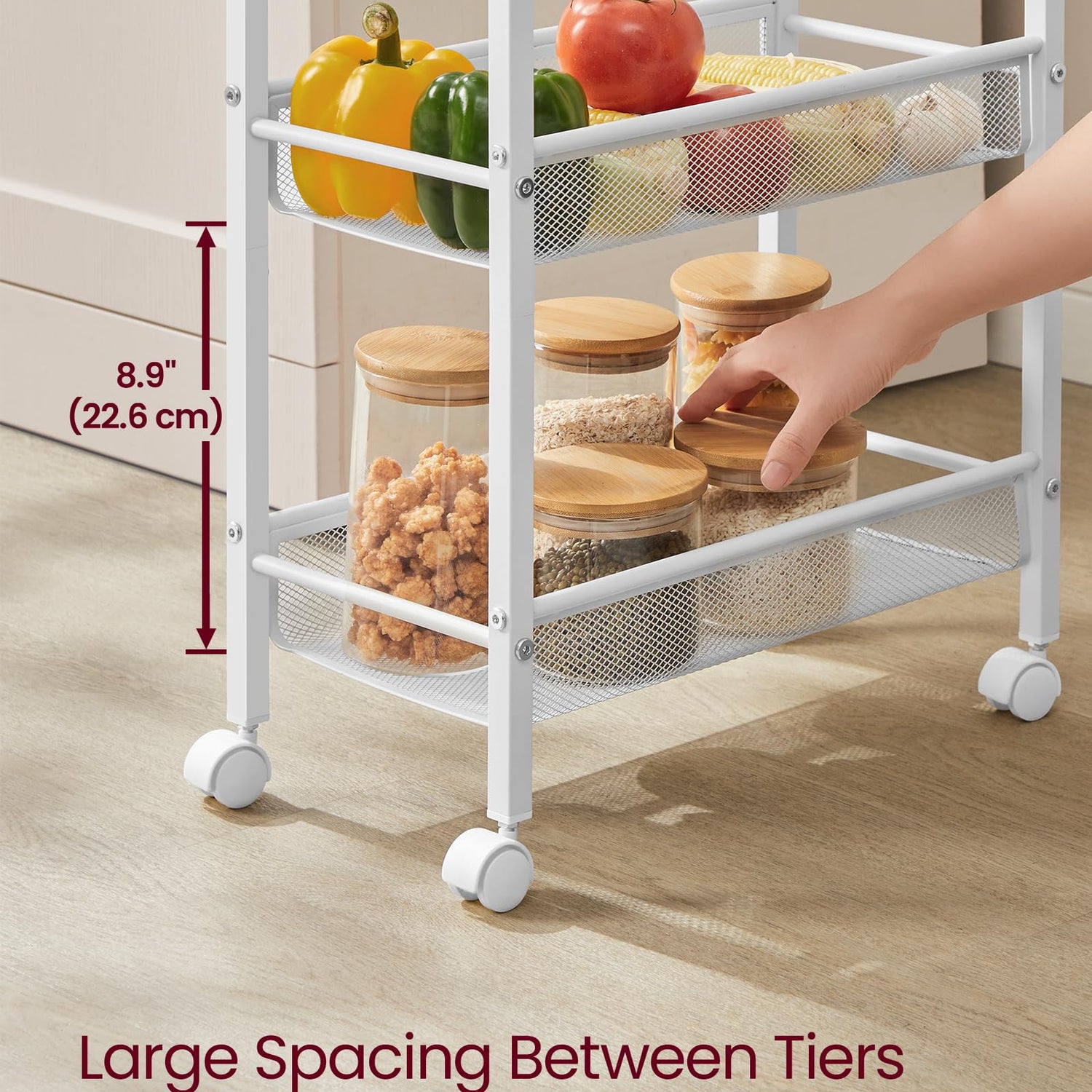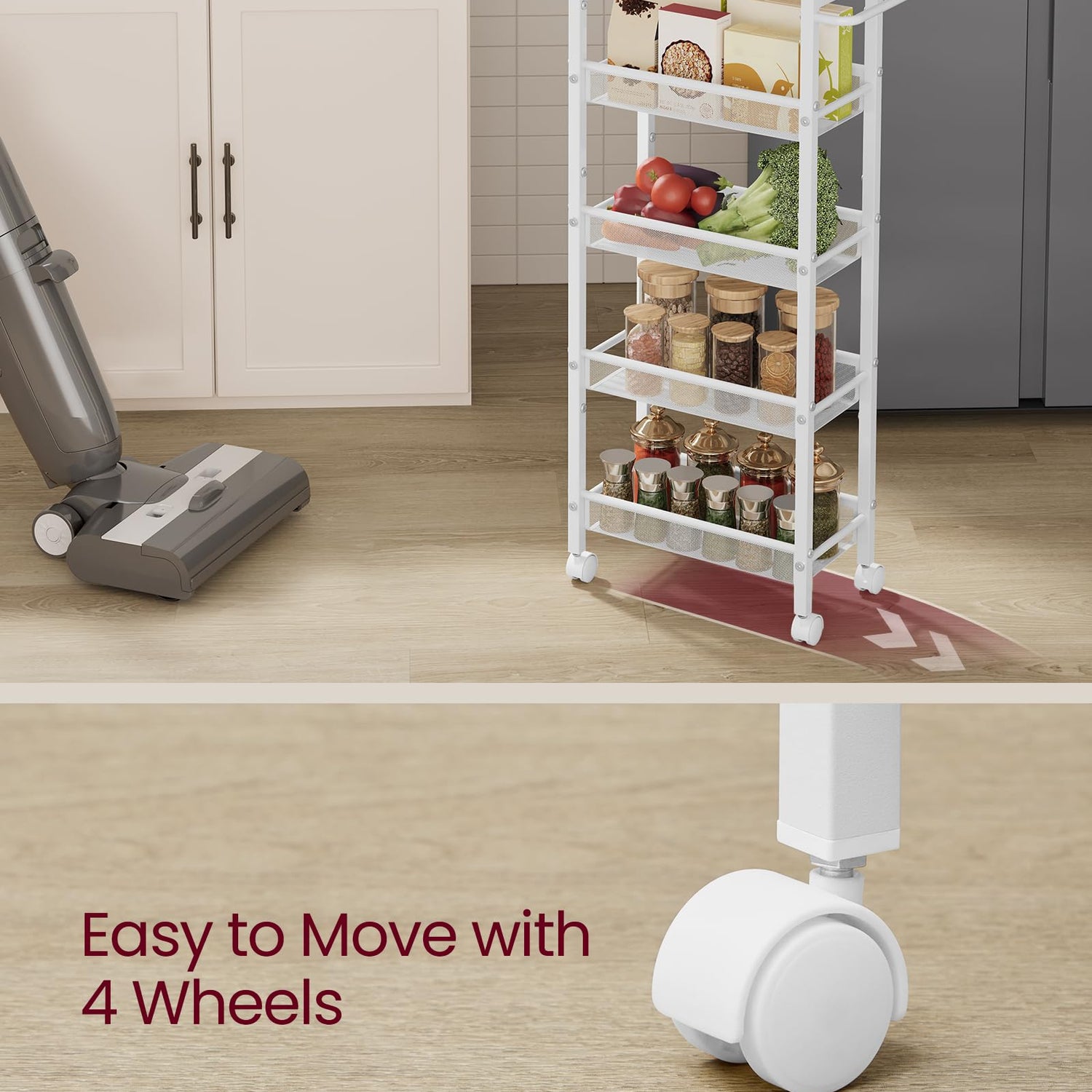 - 【EASY TO MOVE】Simply move this storage cart anywhere you need easily with the metal handle and four 360° swivel casters. Easy-peasy!