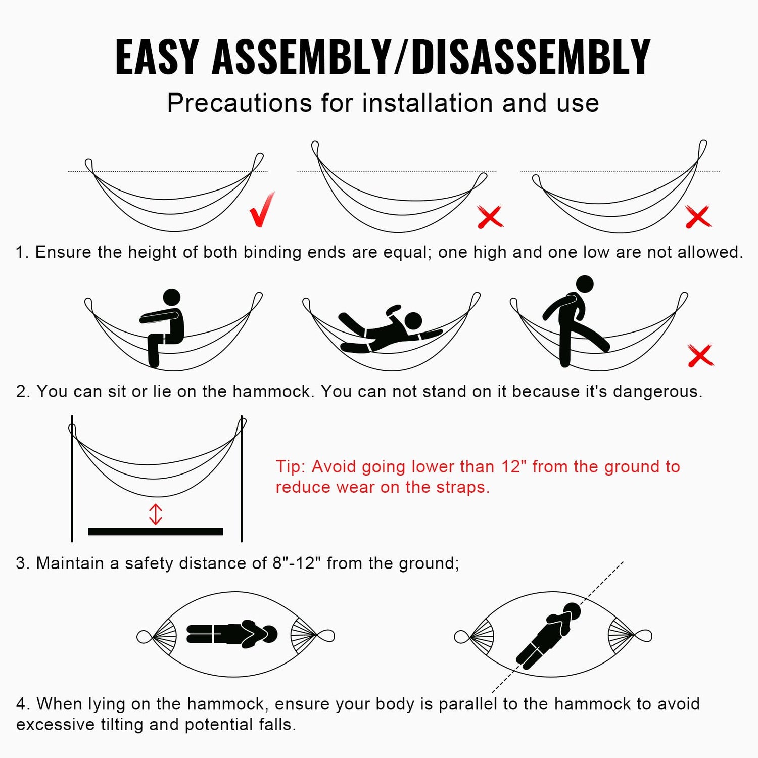 - Easy Installation: Complete with all necessary fittings for a quick and easy setup. Simply tighten the screws to assemble, and with detailed instructions and a parts list included, you can effortlessly put together your stand for hammock, saving time and effort while enjoying immediate hammock comfort.