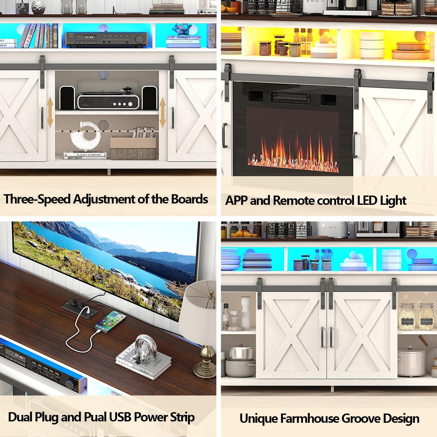 - 【DOUBLE-ROW SOCKET】Farmhouse TV Stand has double-row sockets on the top, 120V/12A/2AC outlets,5v/2.1A/2 USB Ports,6.5-Foot Power Cord.which is convenient for wiring and convenient for customers to use electronic equipment. The plug has been certified by UL.