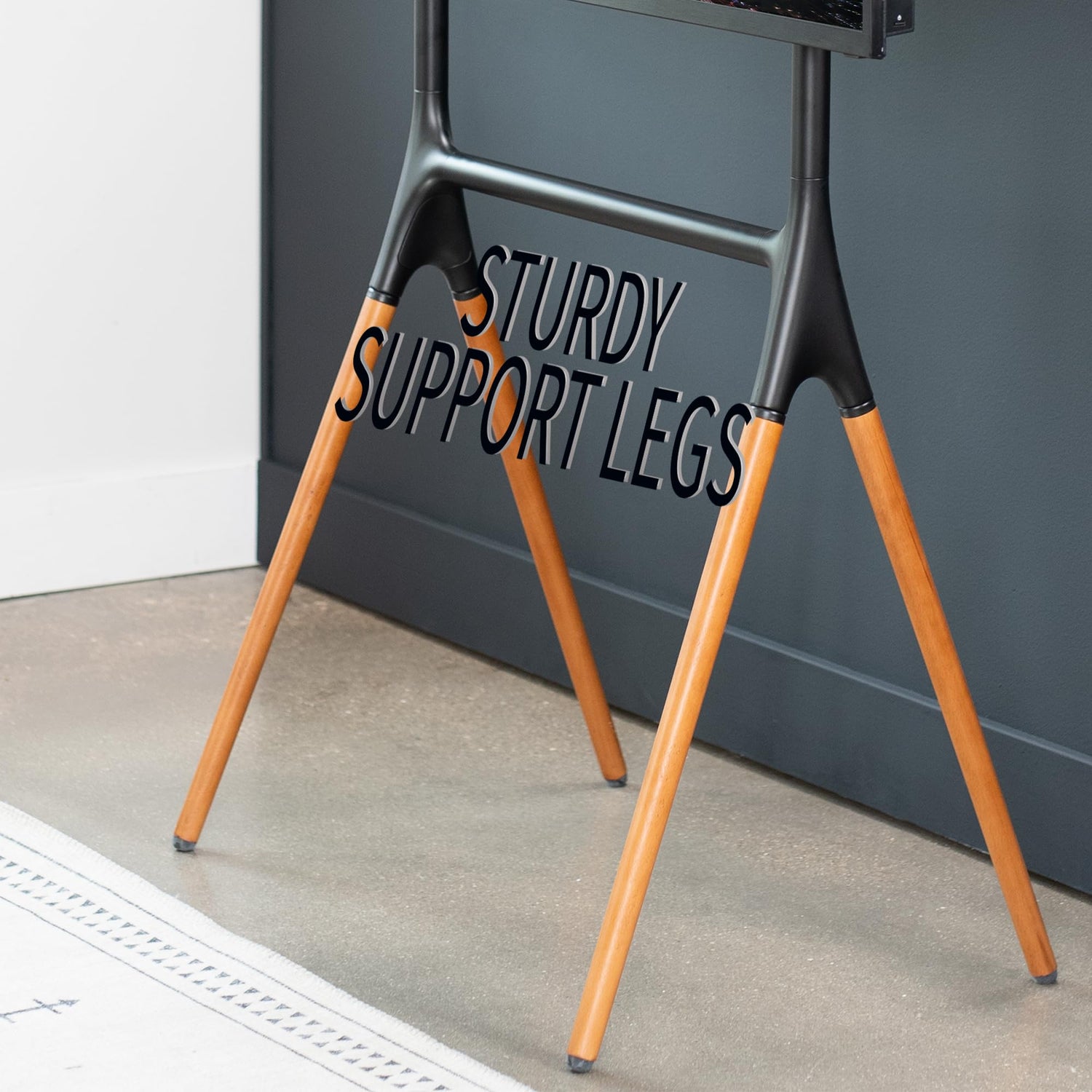 Details: Modify your flat screen TV into an art studio easel with Easel Studio TV Stand (STAND-TV70A) from VIVO! This stand features an elegant and classy wooden finish and its construction is solid and stable. It's able to support 49" to 70" TV screens and features anti-slip pads on each of its four legs. Raising your screen to a height which is comfortable to view, this stand is ideal for home theaters, apartment studios, modern offices, trade shows, and more! The simple height adjustment allows you to find just the right angle for your audience. An integrated cable management system ensures that cords, which could potentially be unsightly and hazardous, stay clean and organized. All necessary hardware and instructions are provided to get your elegant TV easel stand put together and ready to use in no time!