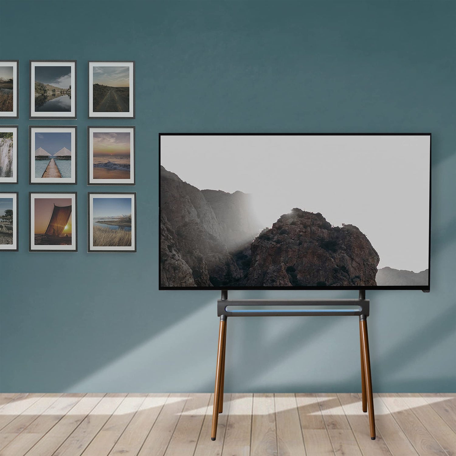 - Studio TV Stand with RGB Light - Turn your 49” to 70” flat screen TV into an art studio easel that’s perfect for home theaters, apartments, offices, and more! Features RGB multi-color gradient lights for a soothing ambient effect and fits VESA 200x200mm to 600x400mm mounting holes.