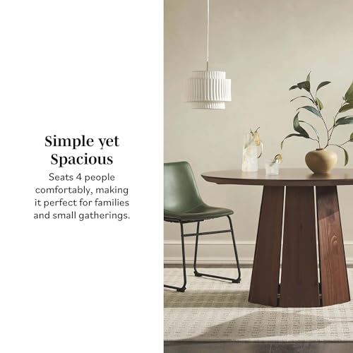 Walker Edison Modern Paneled-Wood Pedestal Base Round Top Dining Table, 48 Inch, Brown