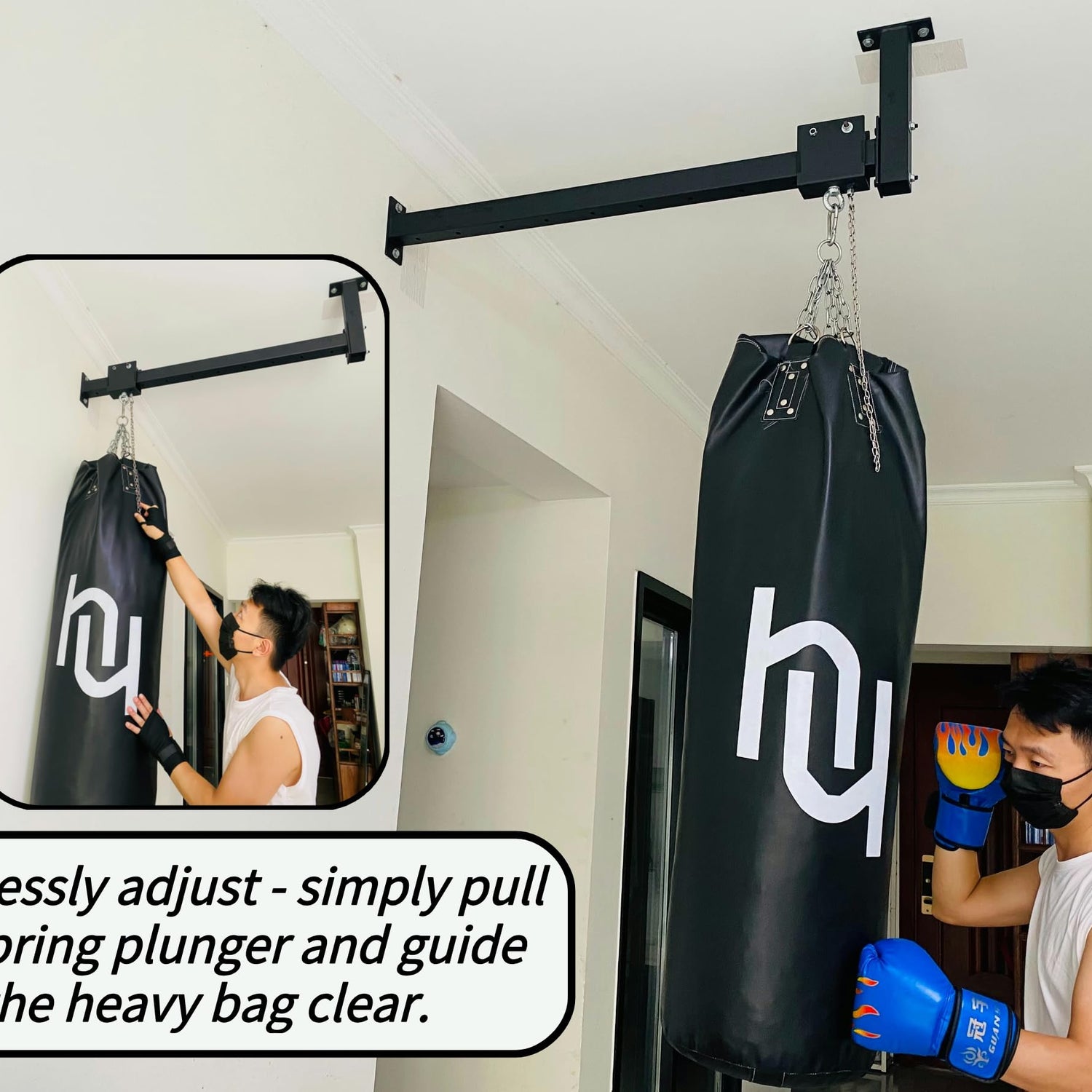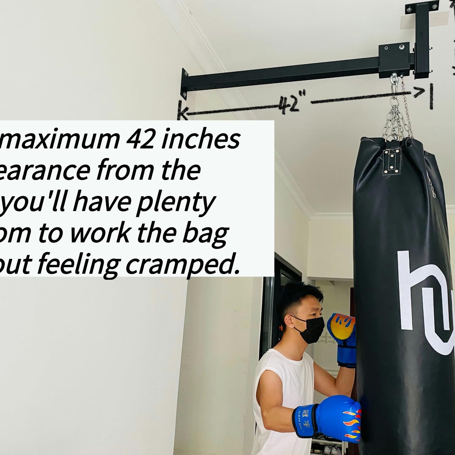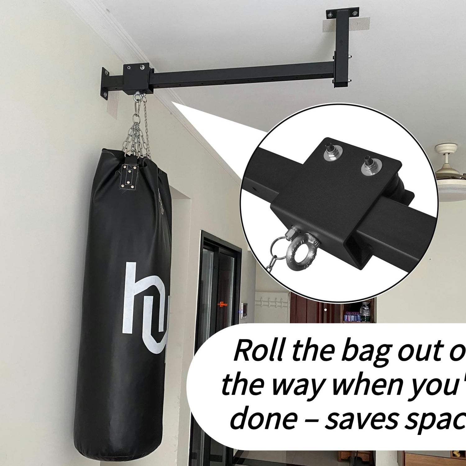 Wall Ceiling Heavy Bag Hanger Roller Mount Saving Space 42'' Long Ease Adjust for Heavy Punching Bags up to 300 LBS
