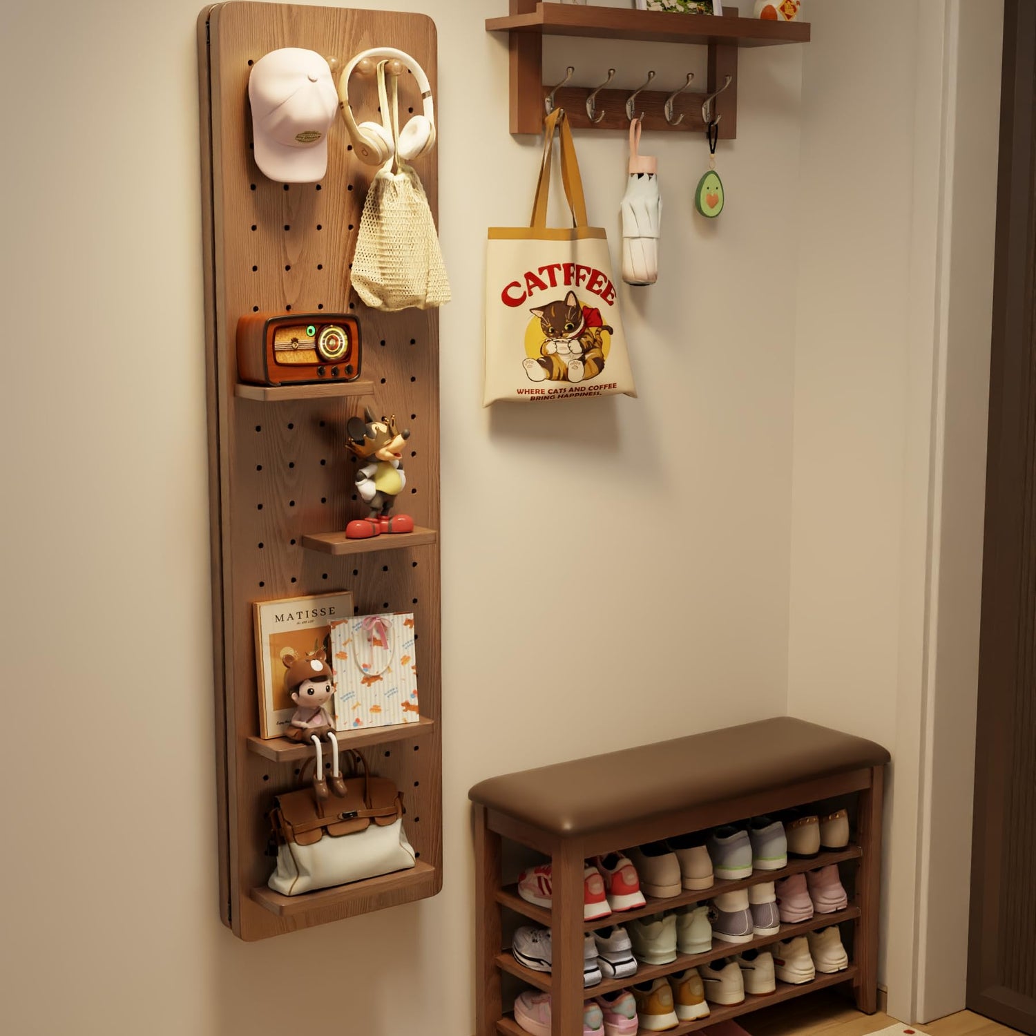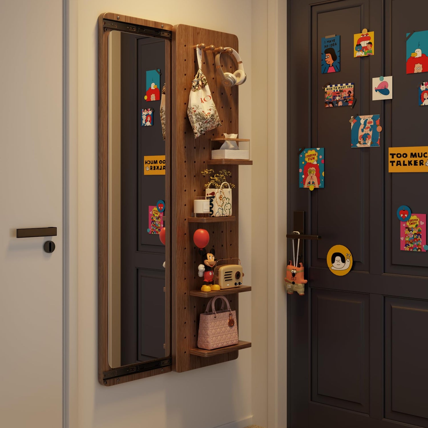 Wall Mirror Full Length,Wood Mirror with Shelf,Rustic Mirror with Hooks Full Length Mirror Wall Mounted Mirror with Multifunctional Design Panel,Living Room,Entryway