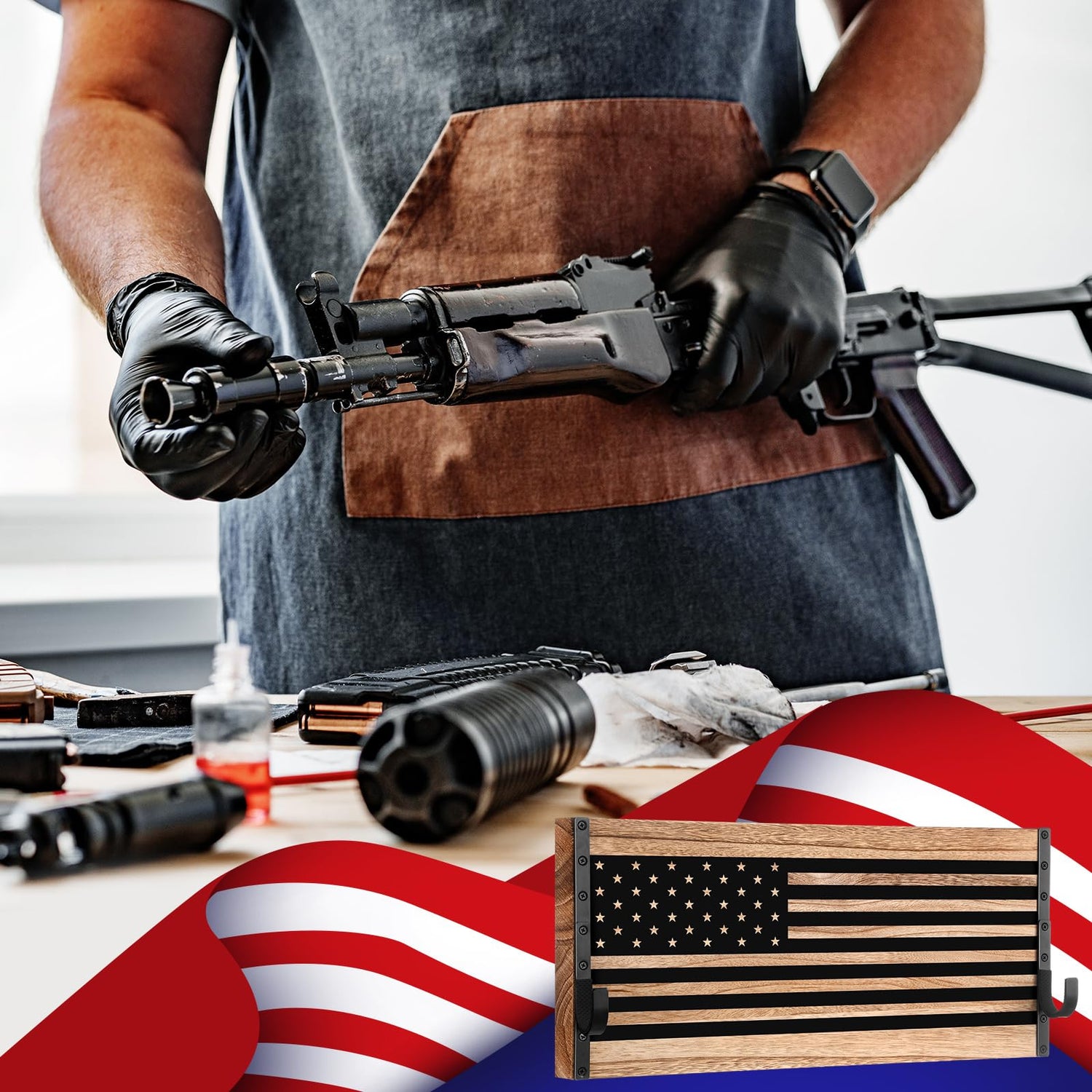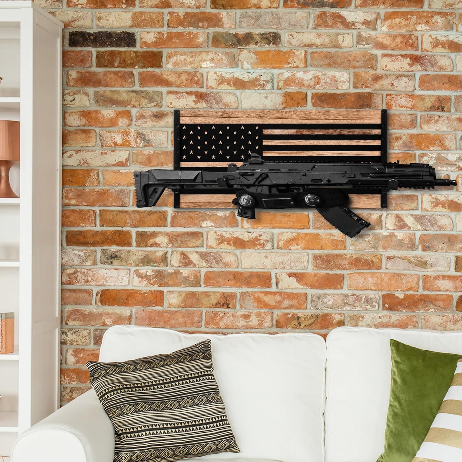 - Versatile and Decorative American Flag Gun Display Rack: our wall mounted gun display racks seamlessly blend functionality with aesthetics; Ideal for enhancing the decor of your home or police station, this American Flag with Gun Rack keeps your weaponry neatly organized and proudly displayed