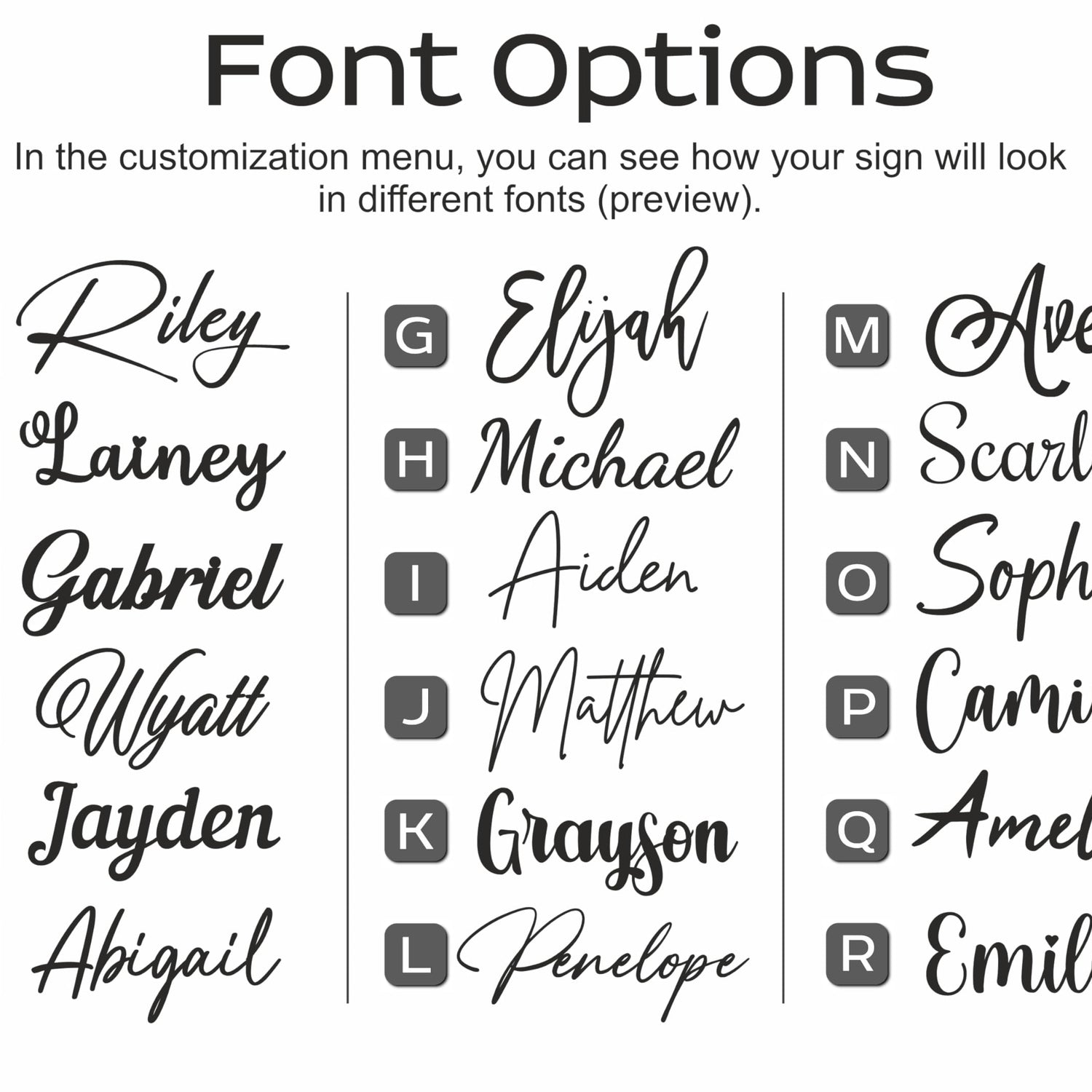 Details: Add a personal touch to your space with our handmade Wooden Name Sign. Crafted from high-quality birch plywood, each sign is meticulously cut and sanded to create a smooth finish that is both durable and long-lasting. Choose from a variety of fonts and finishes to customize your sign and create a unique piece that is perfect for any room in your home or office. Our Wooden Name Sign also makes a thoughtful gift for weddings, baby showers, or housewarming parties.