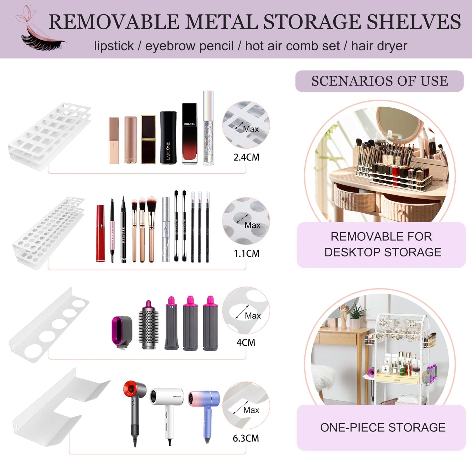 • 【Rotating Jewelry Holder Organizer】Makeup and hair organizer have four wheels that can rotate 360 degrees,and two of them are lockable,and you can slide them at will. Even if it's heavy, you can easily move it. Convenient for your storage.The casters on this cosmetics organizer make it effortless to roll from one room to another, allowing you to conveniently use your cosmetics and skincare wherever needed.The built-in brakes on the front casters ensure that once you find the perfect spot, the make up organizers and storage will securely stay in place without the effort of moving heavy beauty products anymore.beauty cart