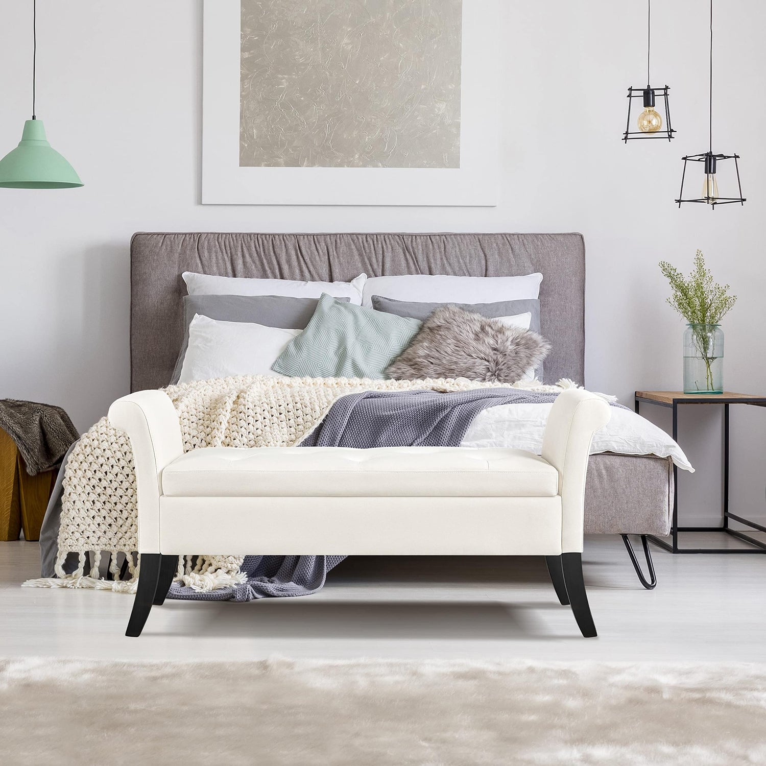 Yaheetech 52in Ottoman Bench Folding Storage Tufted Fabric Entryway with Arms Footstool Large Foot Rest Seat Rolled Cushioned Fresh White