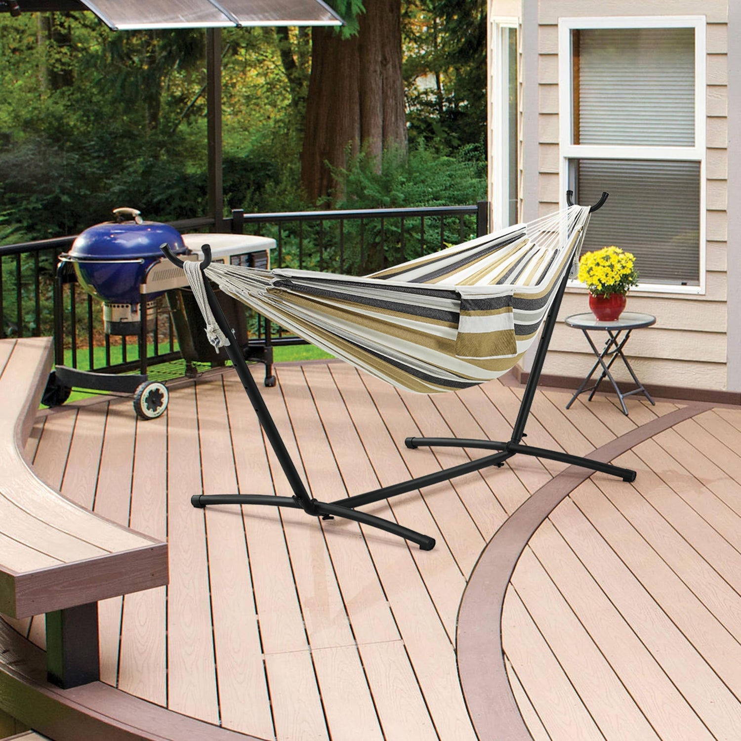 Yaheetech Double Hammock w/Stand, 2-People Hammock & Stand Set w/Storage Bag & Carrying Bag, Outdoor/Indoor Heavy-Duty Portable Hammock, 450LB Capacity - Desert Stripe