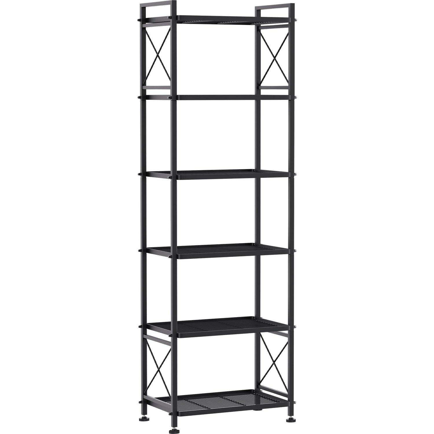 YOHKOH 6 Tier Metal Storage Rack Shelves, Standing Storage Shelf Units for Laundry Bathroom Kitchen Pantry (Black,17.0L x 12.9W x 64.9H)