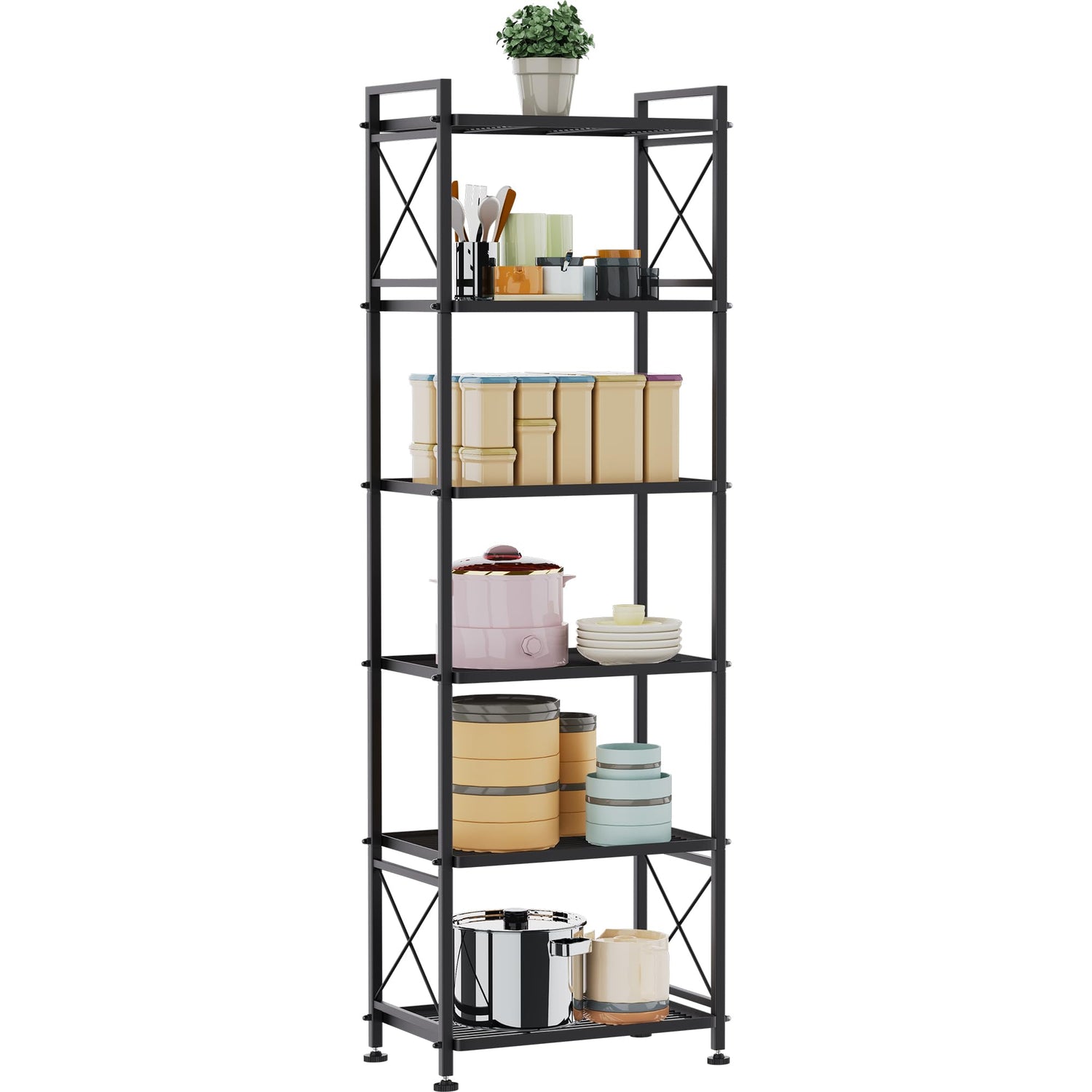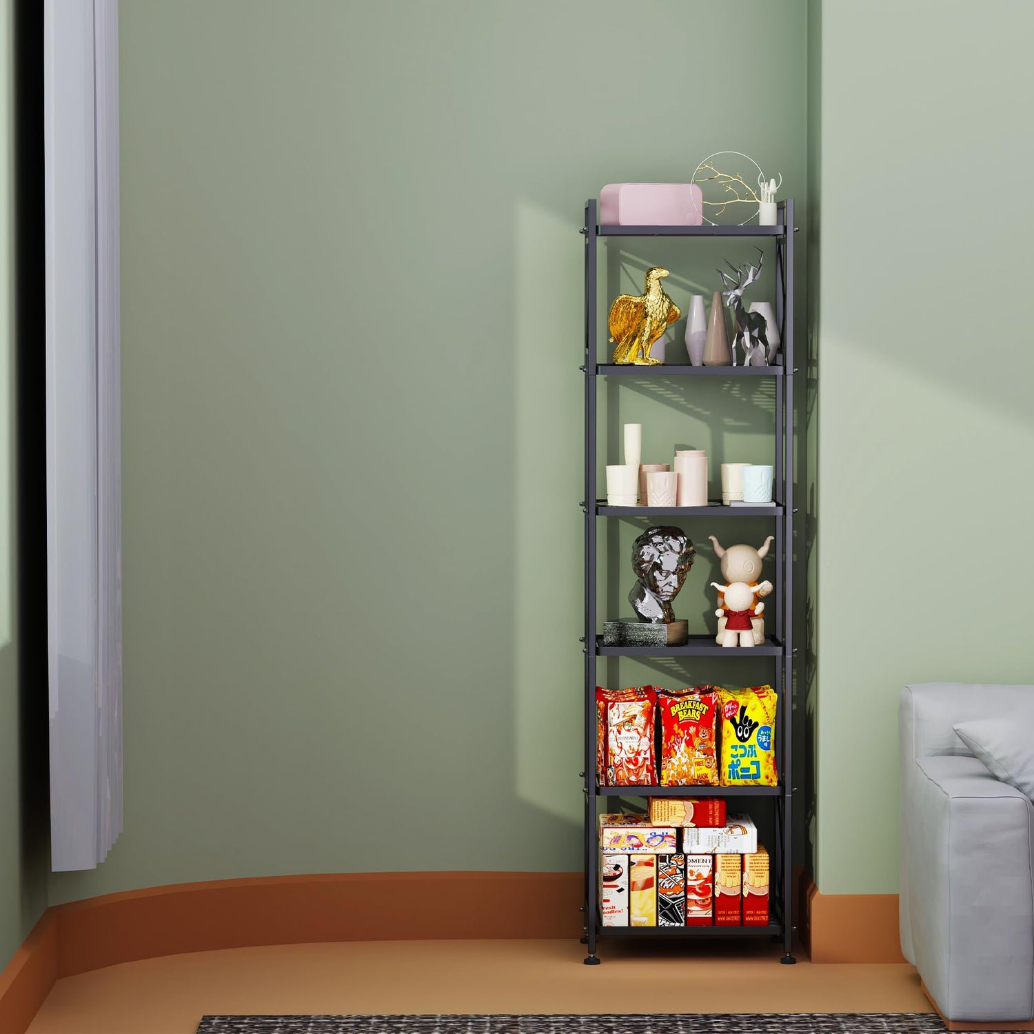 - SMART STORAGE: 6 Tier metal Storage Rack Shelves perfect Size: 17.0”Lx12.9”Wx64.9”H, suitable for narrow space or room corner to store odds and ends, such as kitchen, bathroom, balcony, garage, entryway or office.