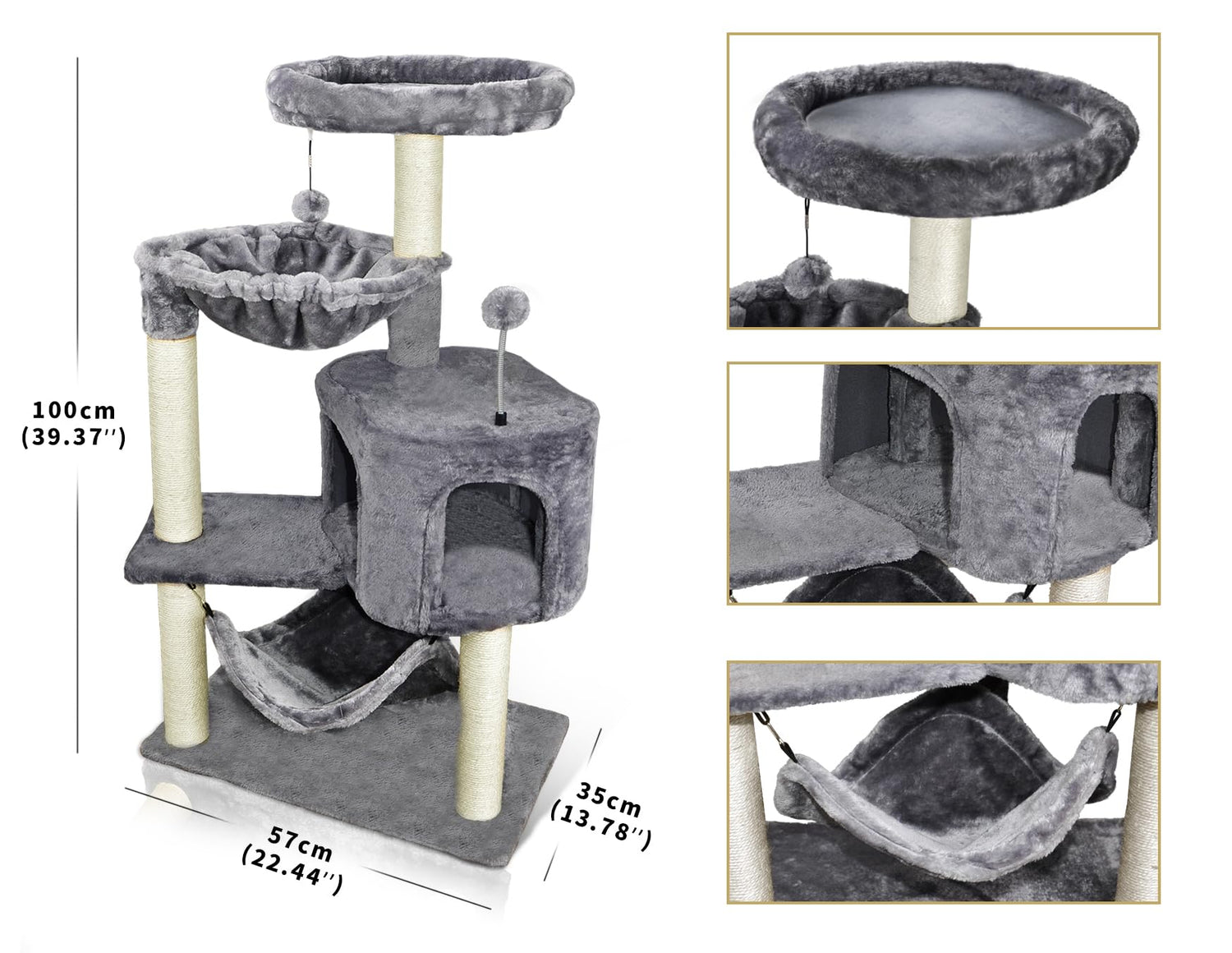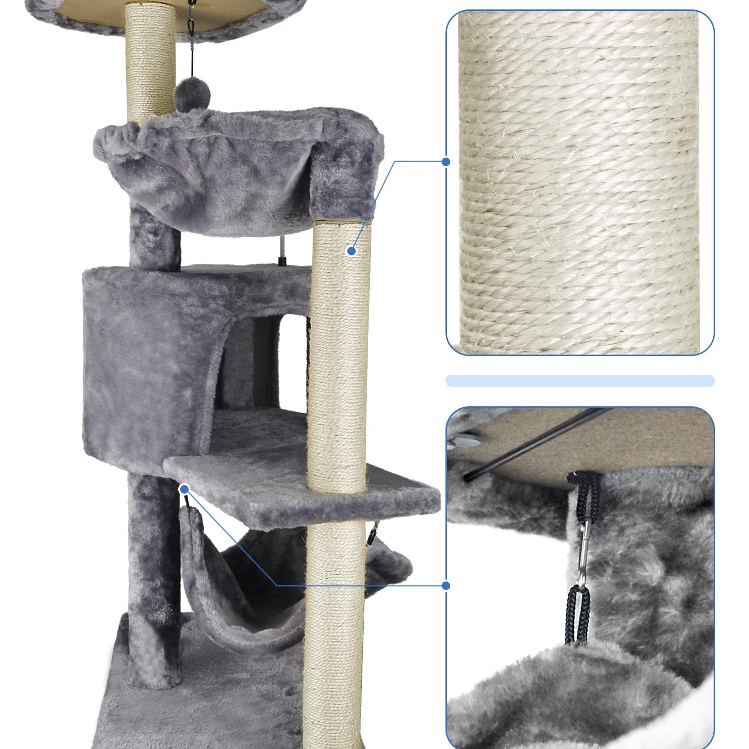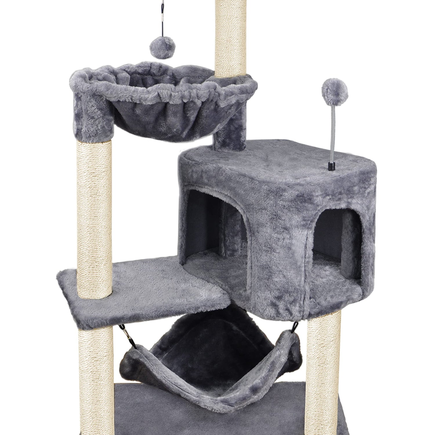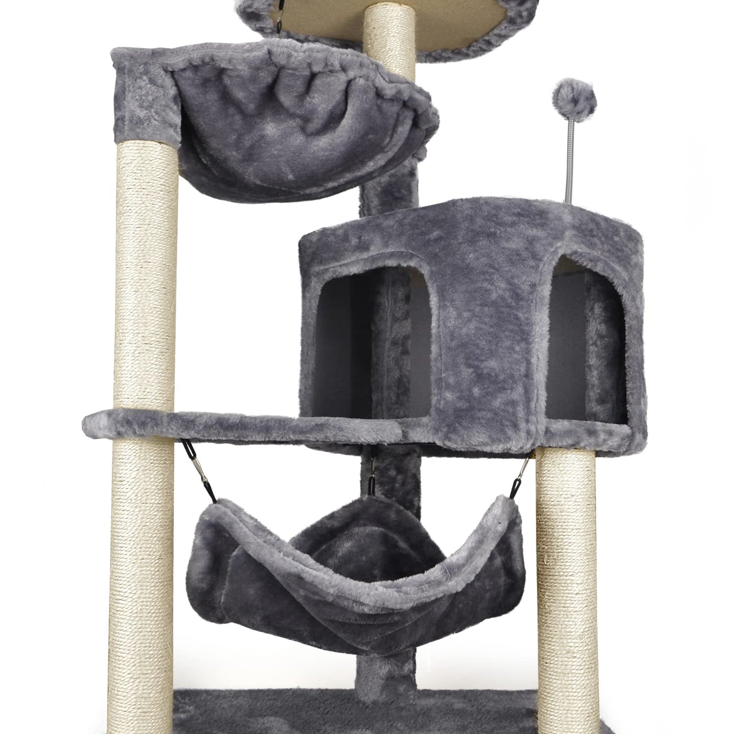 YUNIQUE Cat Tree with Cat Condo and Big Hammock, Grey