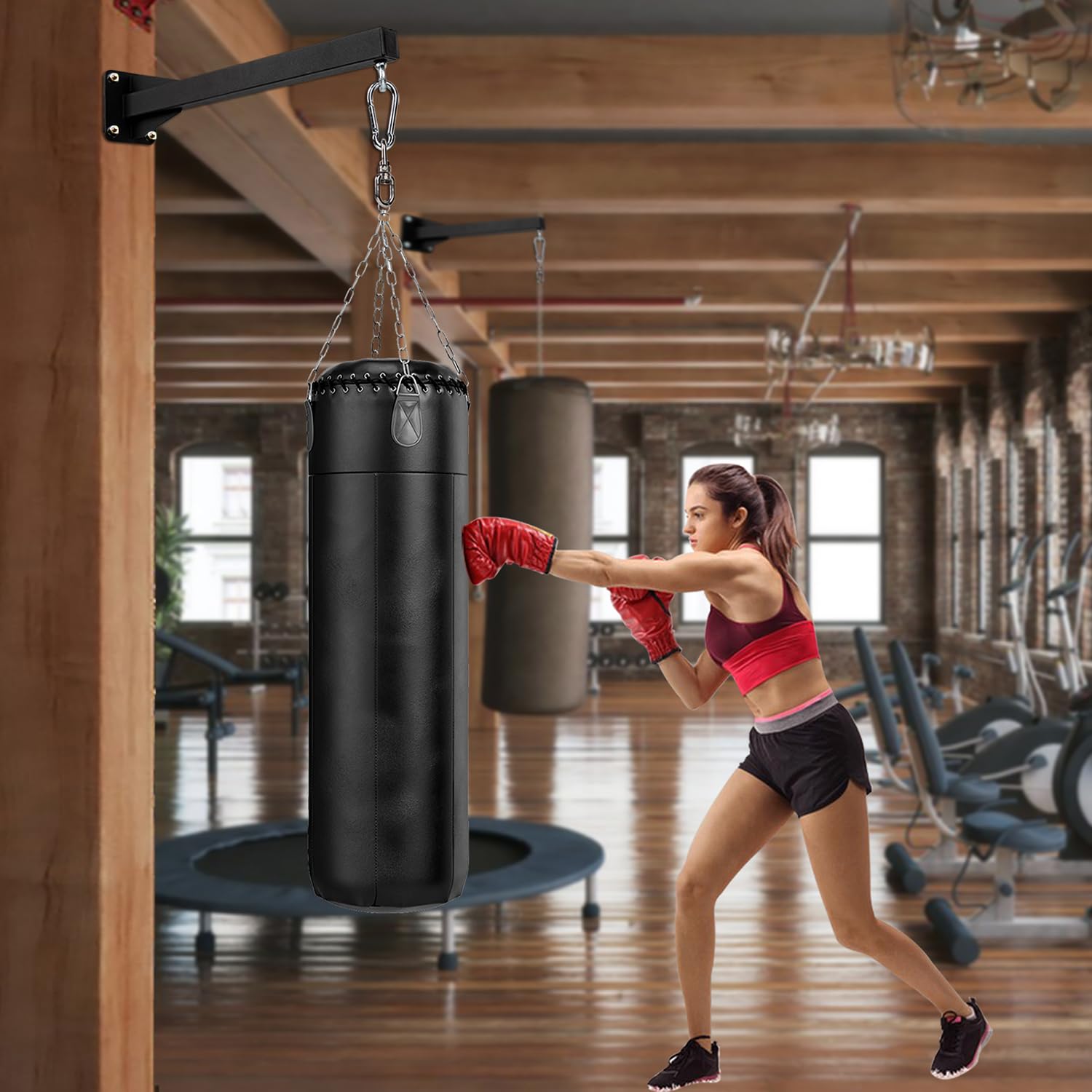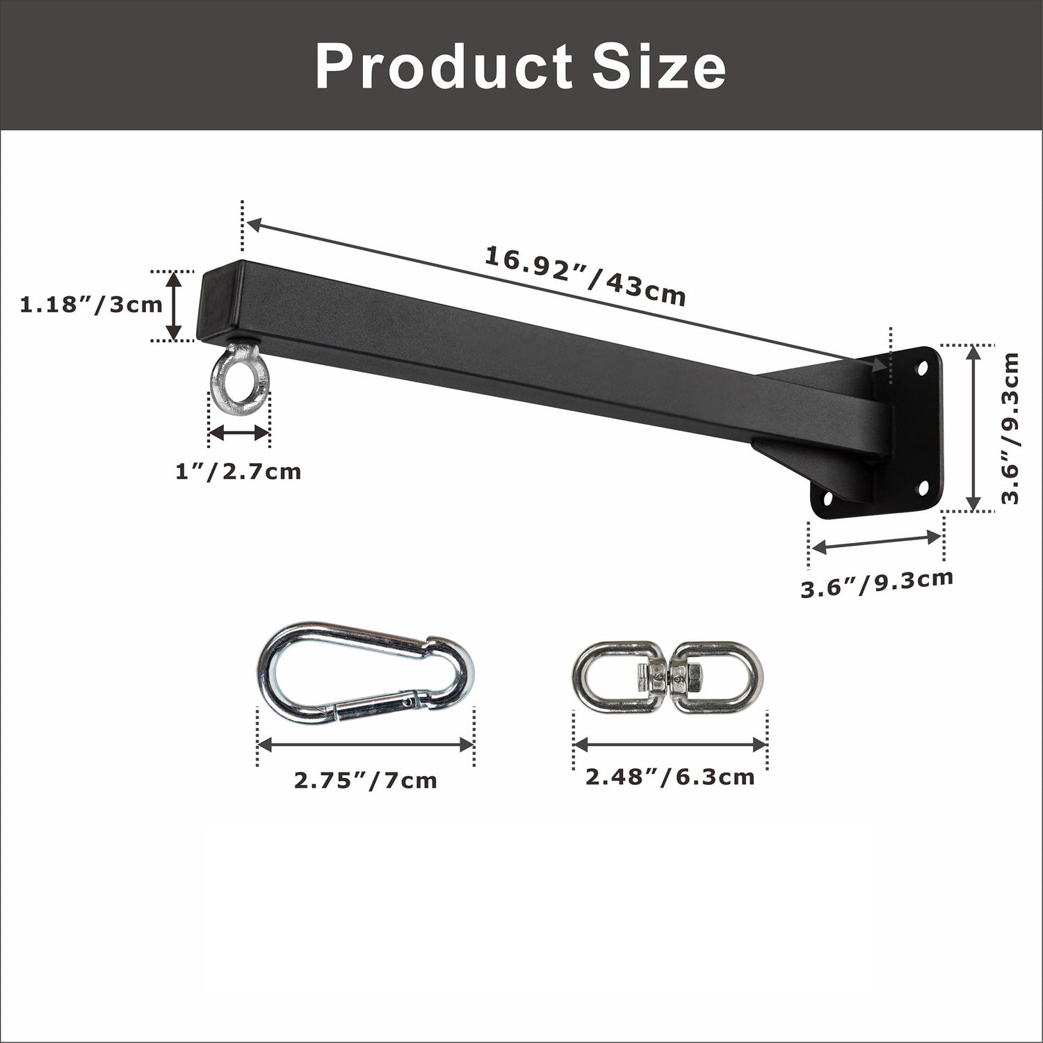 - 【Excellent Quality】Wall-mounted punching bag hanger is made of heavy metal material, the surface is fully covered with black powder coating, using a special rust prevention formula, with lasting rust and corrosion resistance.