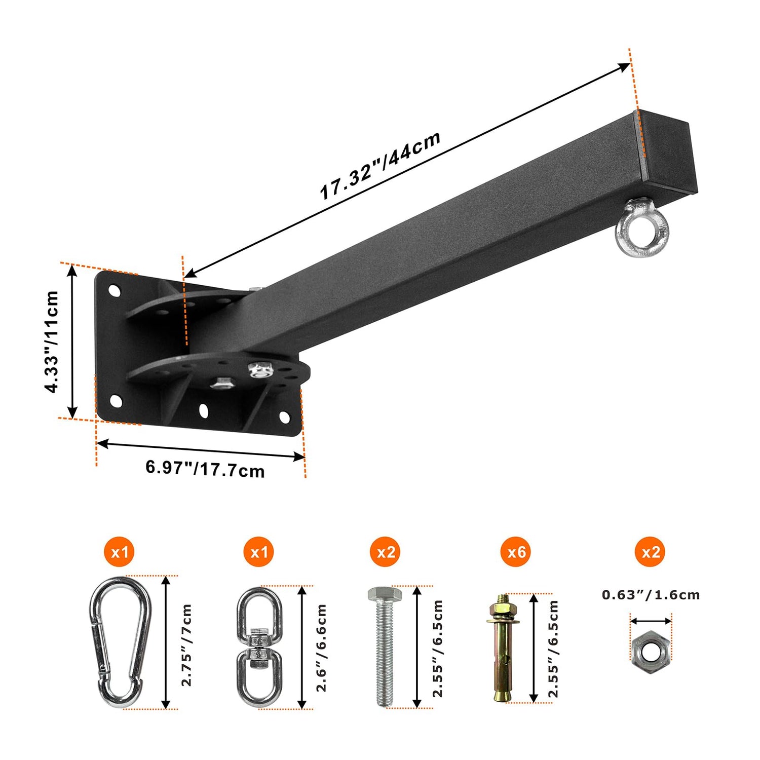 - Heavy steel structure: Wall mount heavy bag hanger use of strong heavy steel manufacturing, worry-free use, with excellent performance. The 5mm thick base with six screw points can be securely mounted on walls and elsewhere, keeping it safe even during and after intense boxing training.