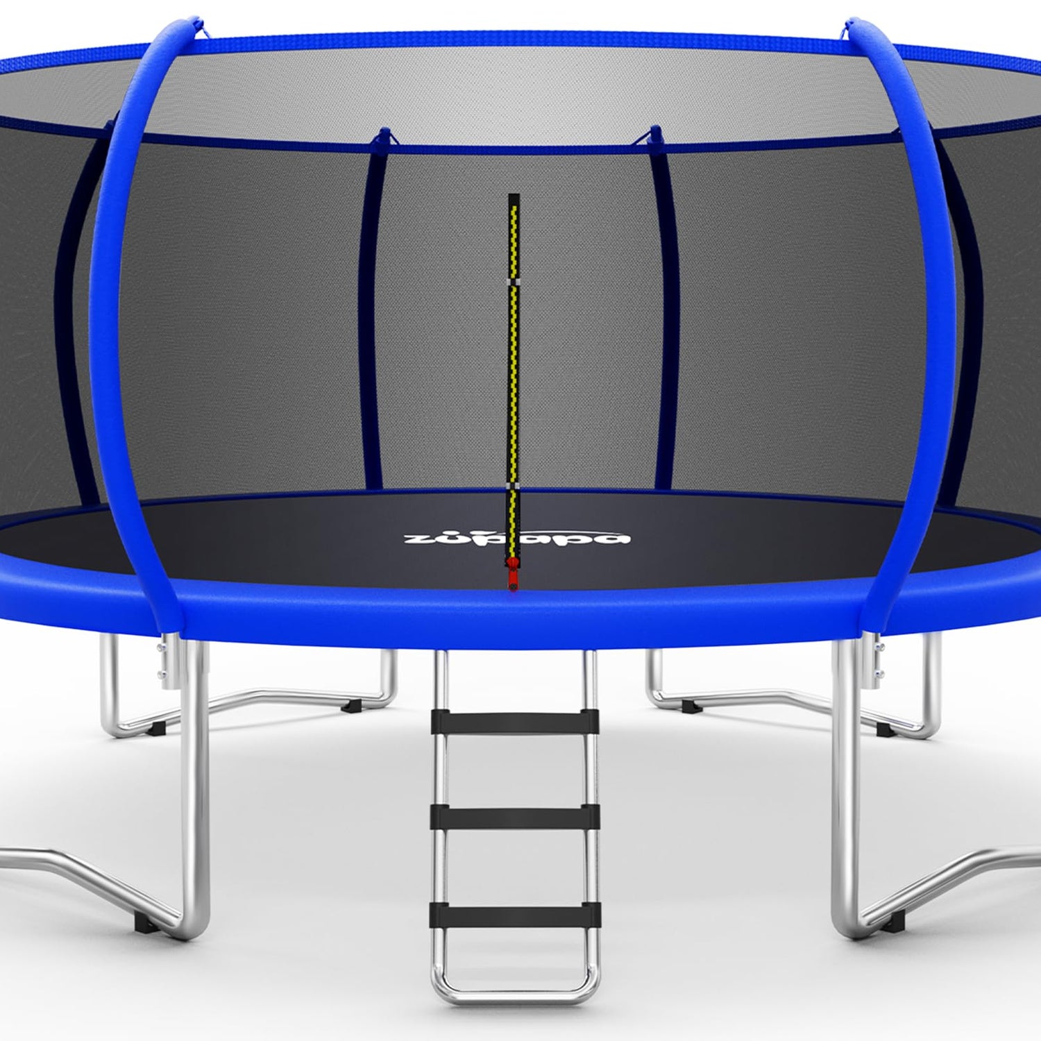 Zupapa 1500LBS Weight Capacity No-Gap Design 16 15 14 12 10FT Trampoline for Kids with Safety Enclosure Net Outdoor Backyards Trampolines with Non-Slip Ladder for Children Adults Family