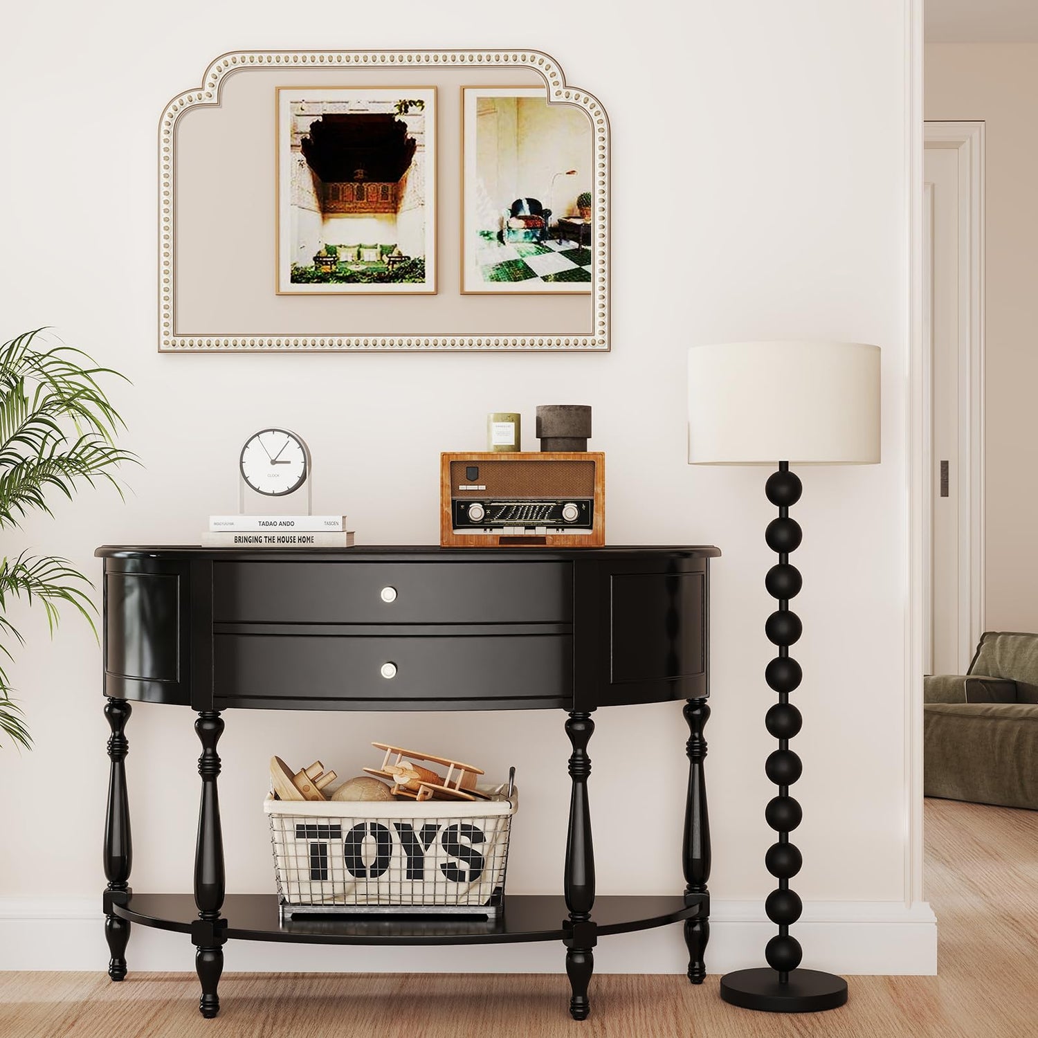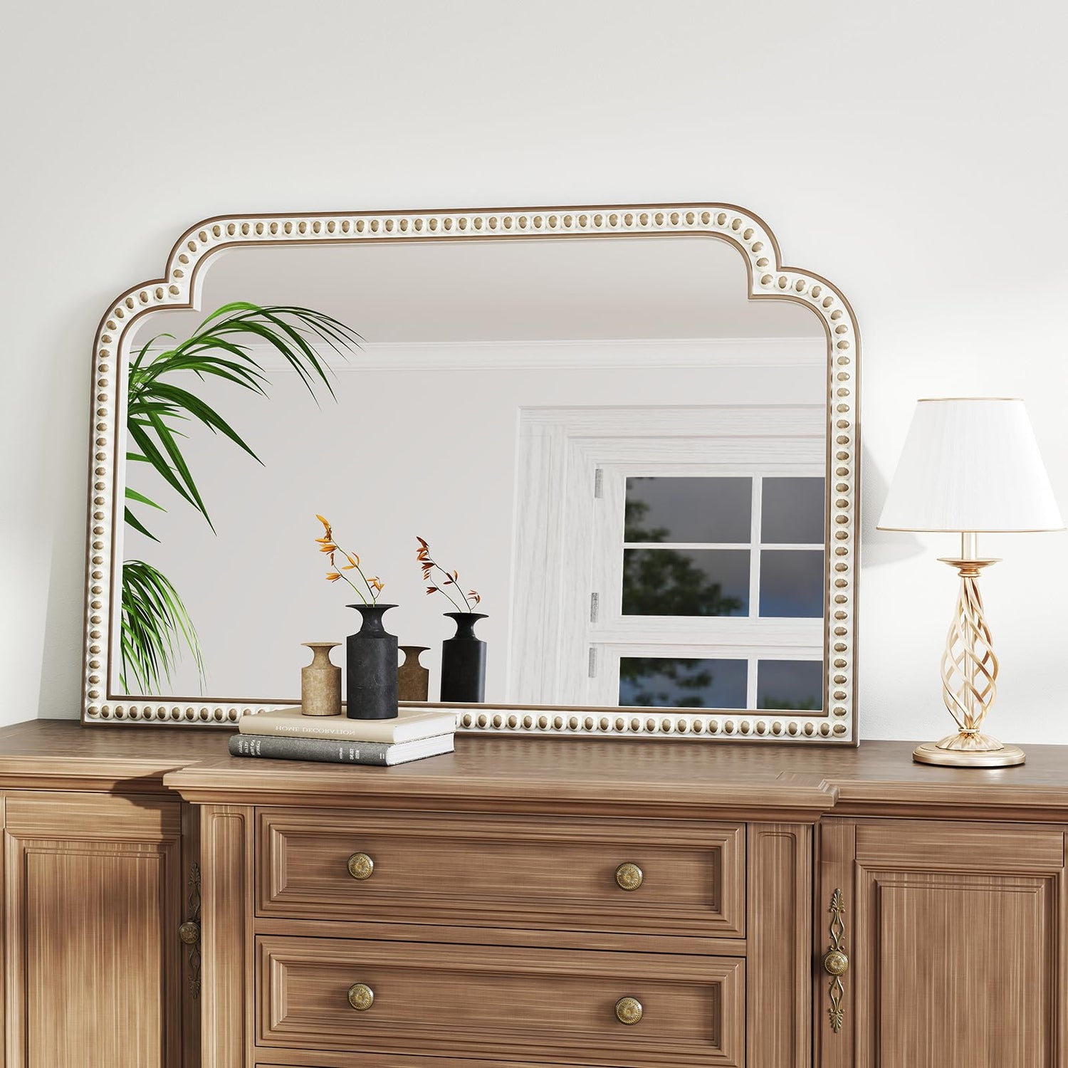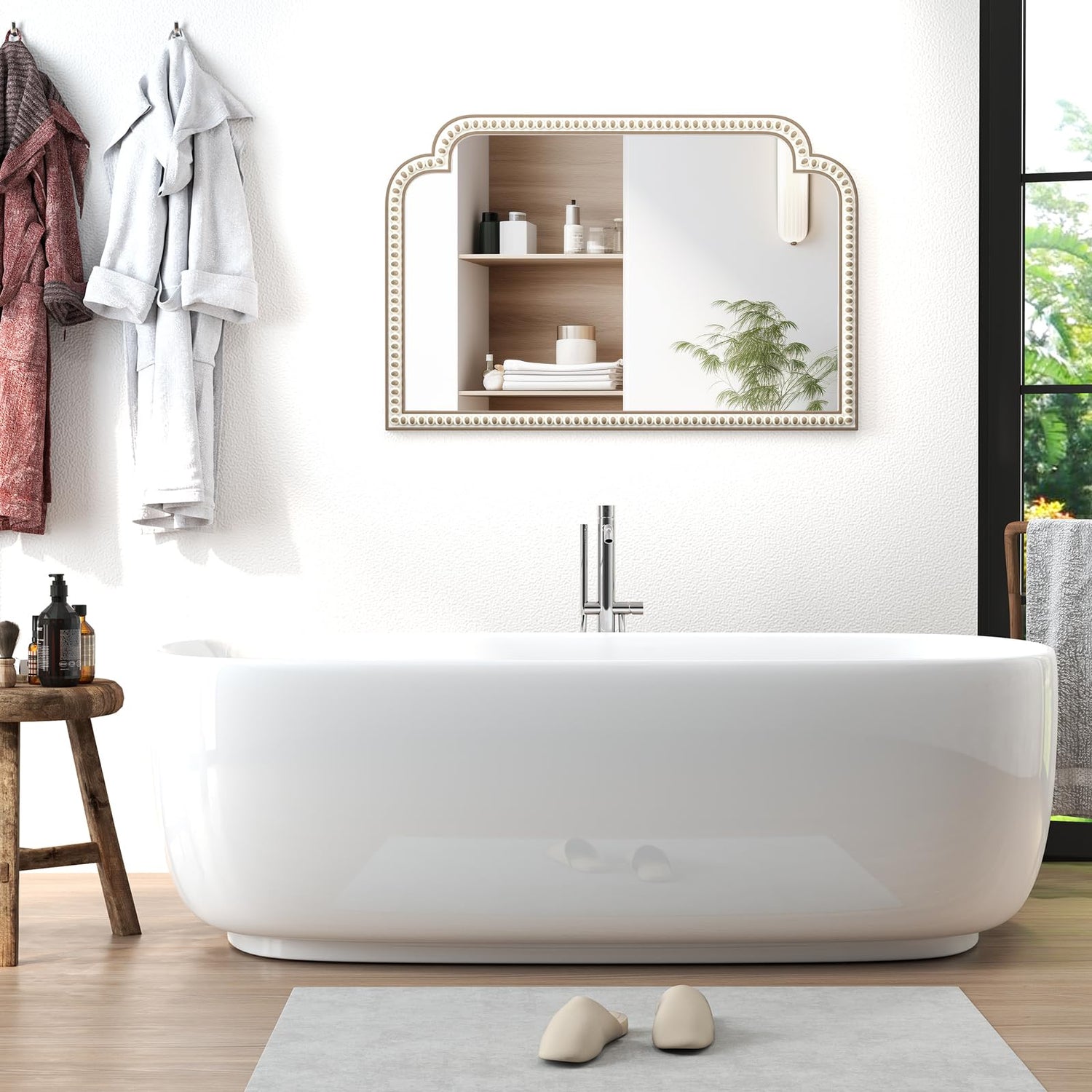 36''x24'' Farmhouse Wood Decorative Wall Mirrors with Beads, Boho Large Wide Arch Mirror for Living Room, Bedroom, Entryway, Fireplace
