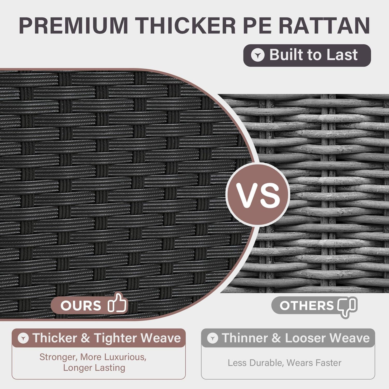 - Handwoven Rattan & Rust-Resistant Frame – This wicker patio furniture set is handwoven with premium rattan over a rust-resistant steel frame, ensuring strength against sun, rain, and wind. A perfect outdoor sectional sofas for patio, deck, backyard, or garden that’s built for year-round use