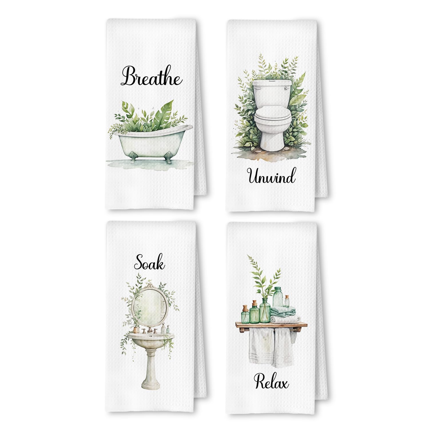 ArtisaEura Boho Farmhouse Bathroom Hand Towels Set of 4, Relax Breathe Soak Unwind Botanical Decorative Hand Towels for Gym Yoga Spa Decor, Modern Farmhouse Bathroom Decor, 16x24 Inches