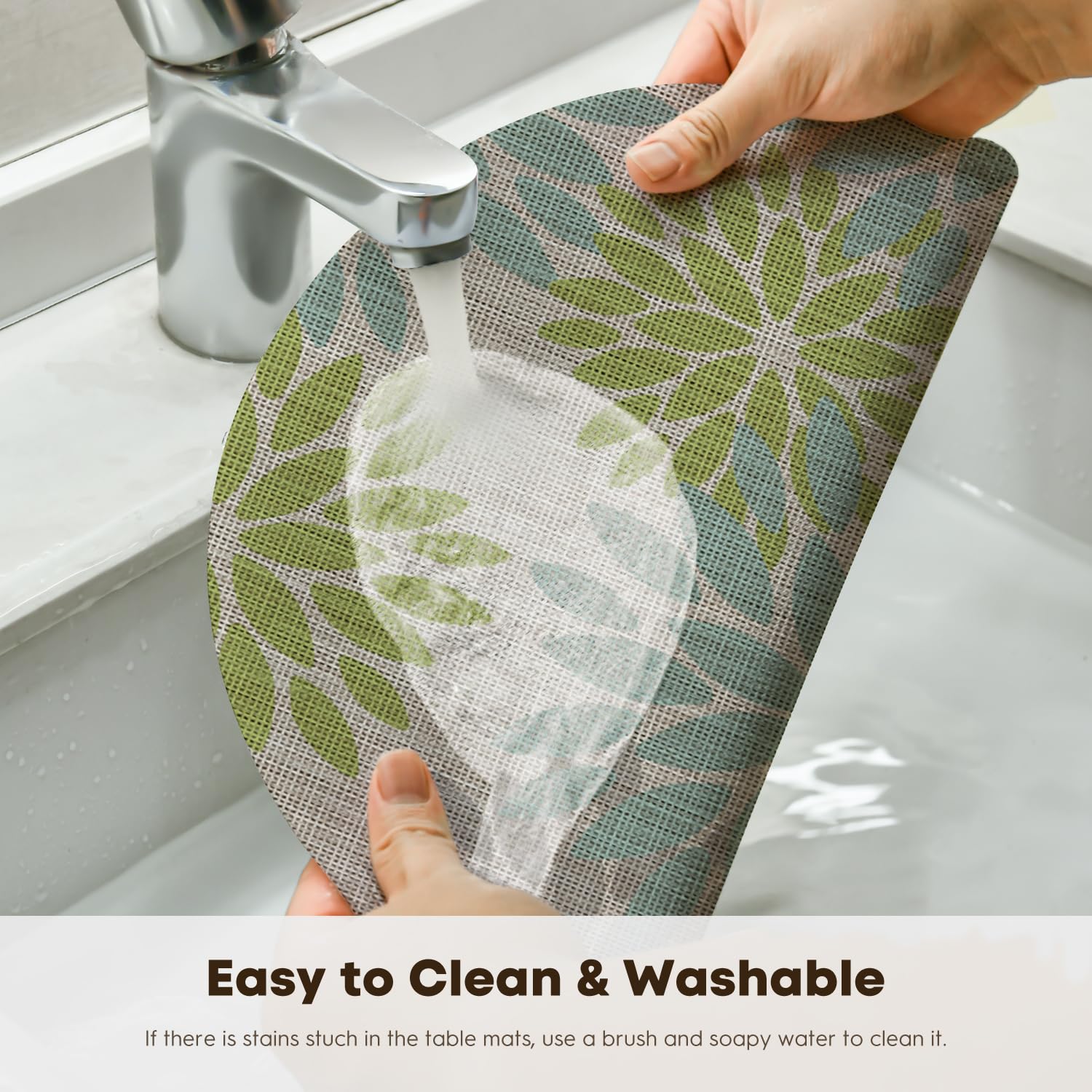 - Easy To Clean:The washable vinyl placemats simply wipe with soap,water and a soft sponge or cloth.Scrub stubborn stains with a soft bristle-brush and a bleach-based cleanse.