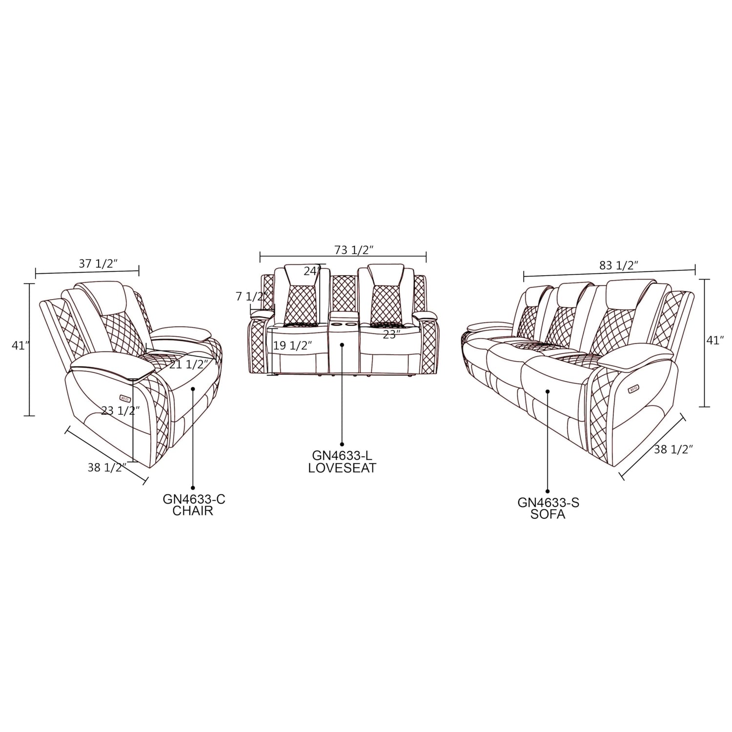 - 【Dimensions】Power Recliner Sofa: 83.5 X 38.5 X 41 INCH; Power Recliner Loveseat: 73.5 X 38.5 X 41 INCH; Power Recliner Chair: 37.5 X 38.5 X 41 INCH.