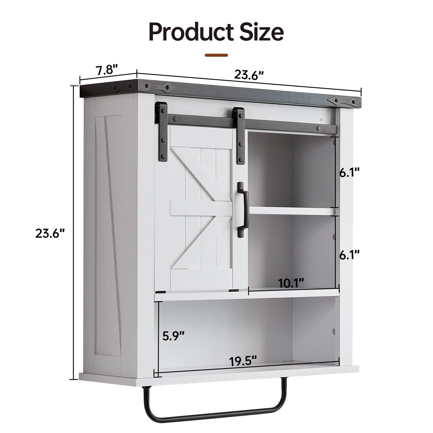 Bathroom Wall Cabinet, Above Toilet Storage Cabinet with Towel Bar, Farmhouse Medicine Cabinet with Sliding Barn Door, 23 Inch Storage Cabinet, Easy to Clean for Bathroom, Bedroom, Kitchen, White