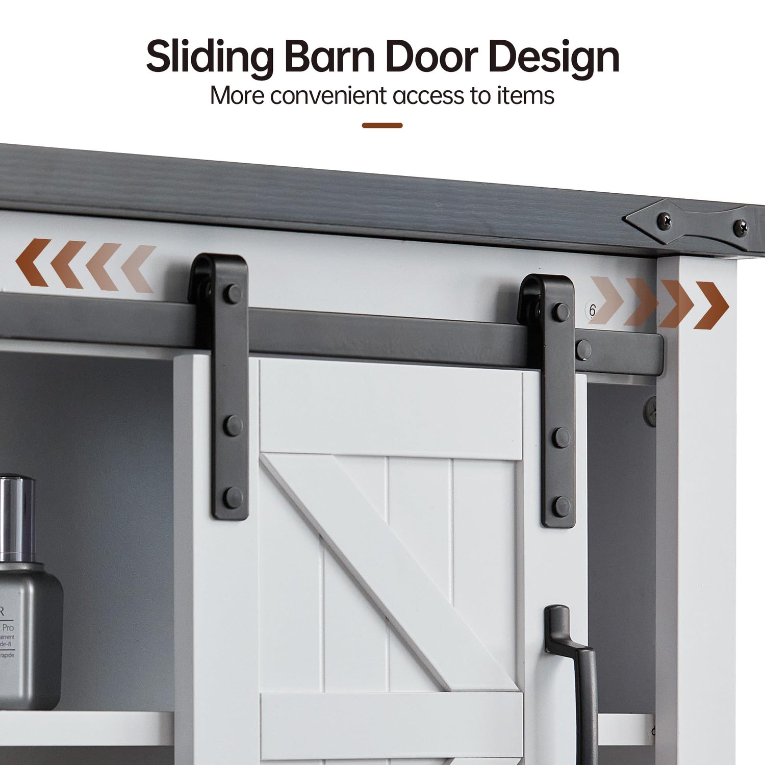 - Sliding Barn Door: The sliding cabinet door can not only saves space, but can also be easily moved to either side as needed to prevent collisions in tight areas, keeping it aesthetically pleasing while making it easier to use.
