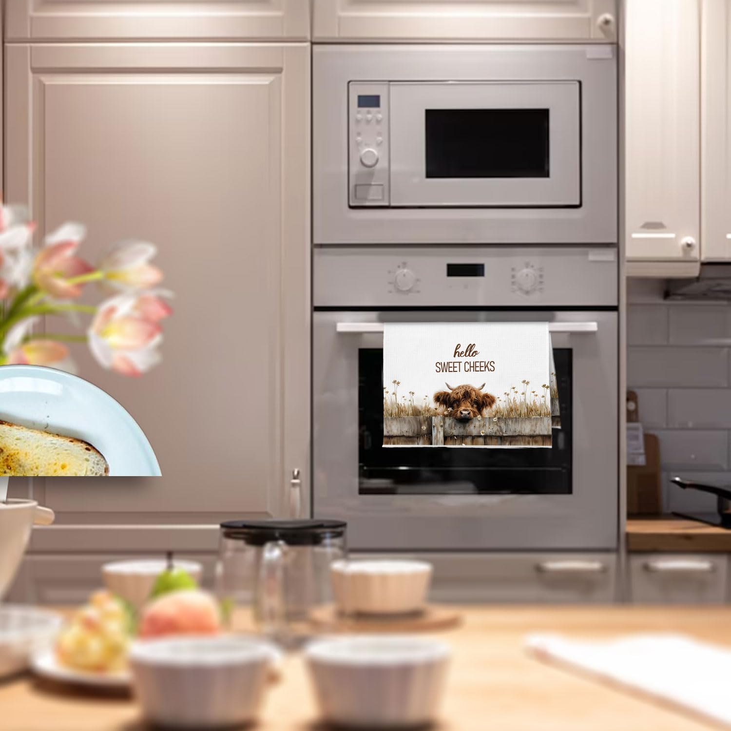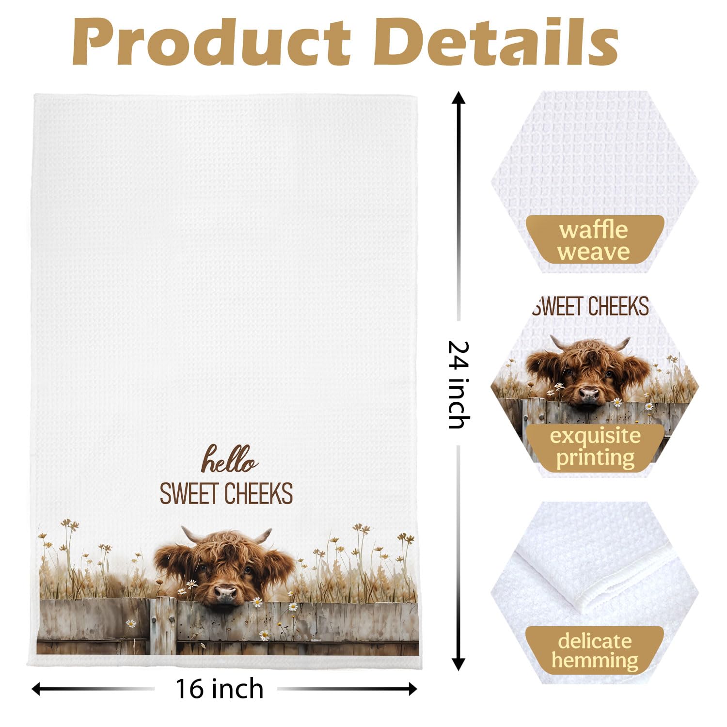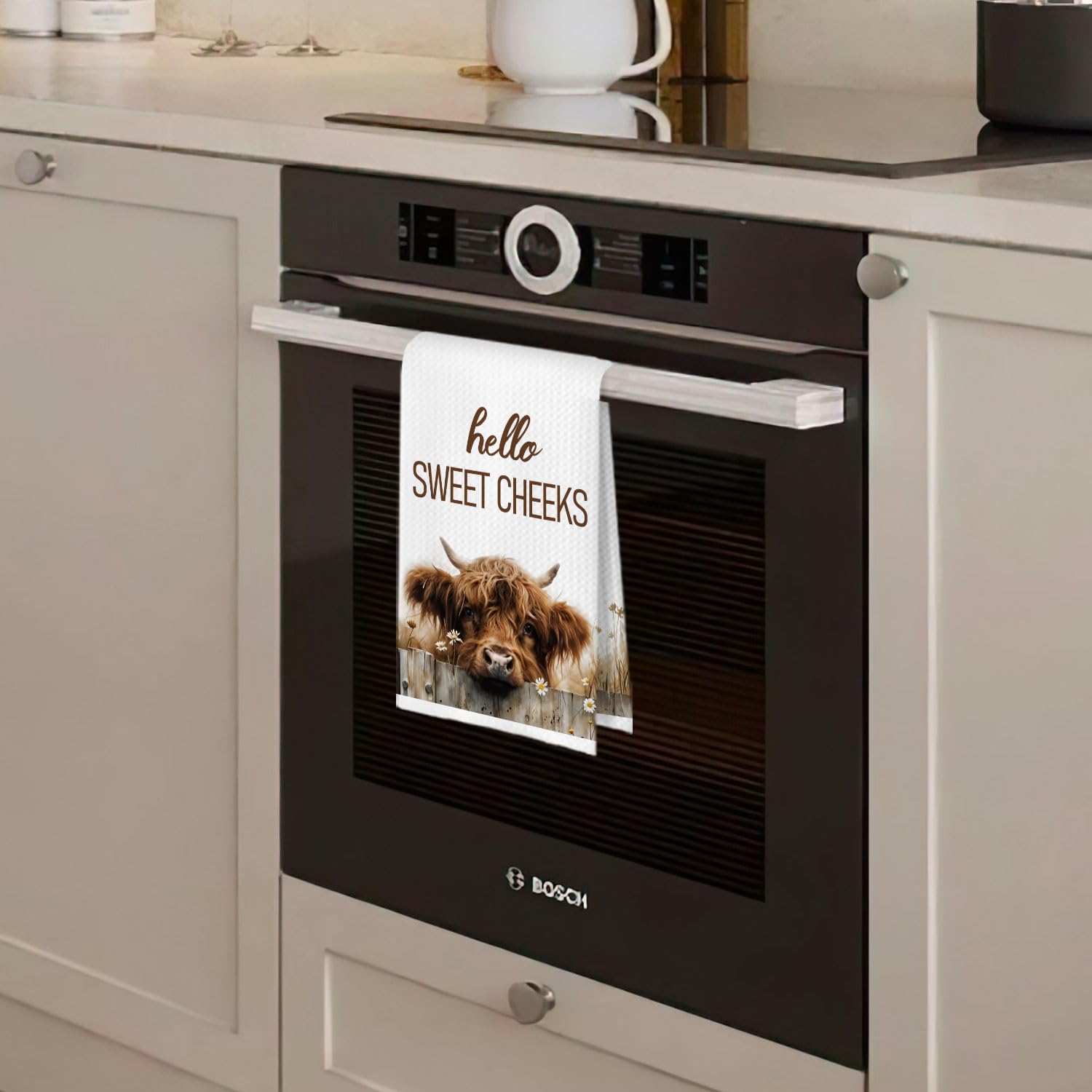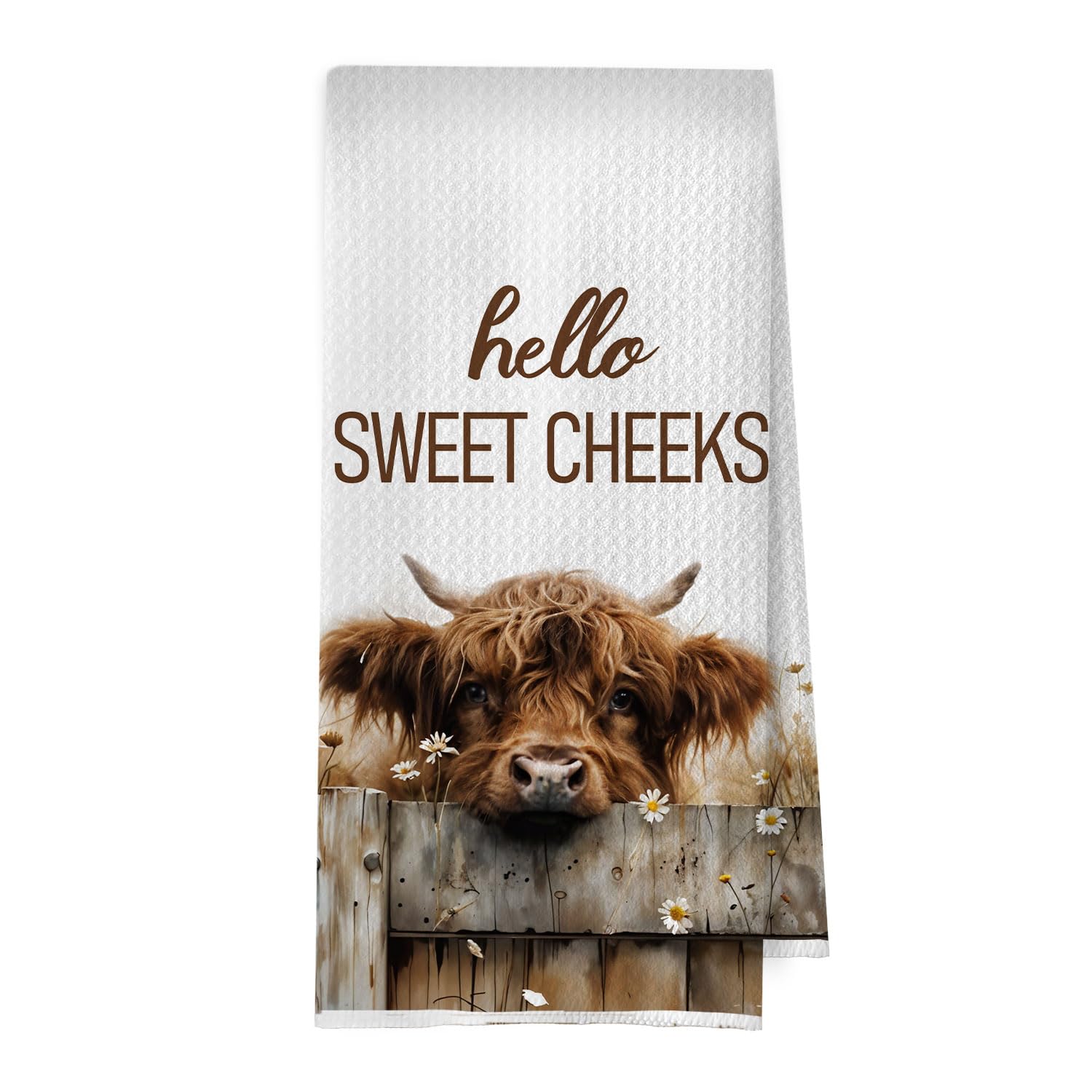 BlissfulAbon Hello Sweet Cheeks Highland Cow Bathroom Hand Towels 16x24 Inch, Farmhouse Highland Cow Kitchen Dish Towels Drying Cloth, Farmhouse Bathroom Kitchen Decor