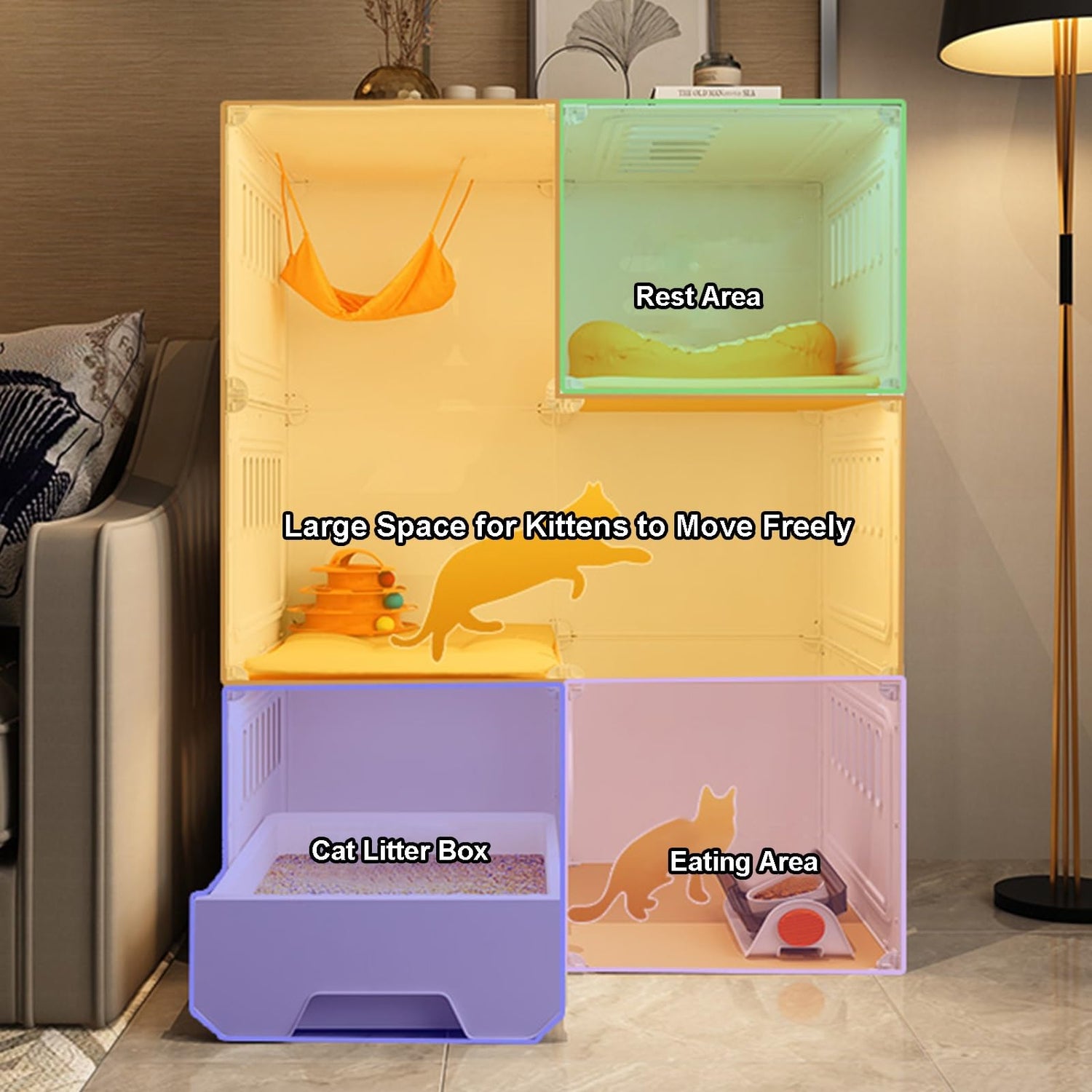Cat Cages Indoor with Litter Box, Thicken Plastic + Resin Material, 2/3-Tier Large Indoor Enclosure with Transparent Windows and Knob Locks(White,27.9x18.3x41.7in)