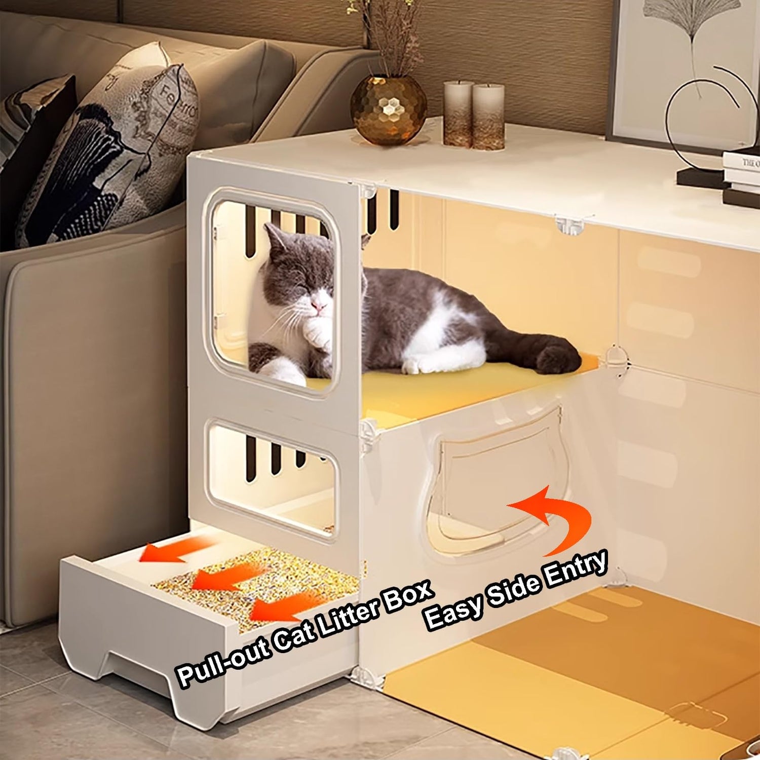 - Thickened material: Door and litter tray made of durable injection molded plastic, rest made of resin panels with steel structures for added strength