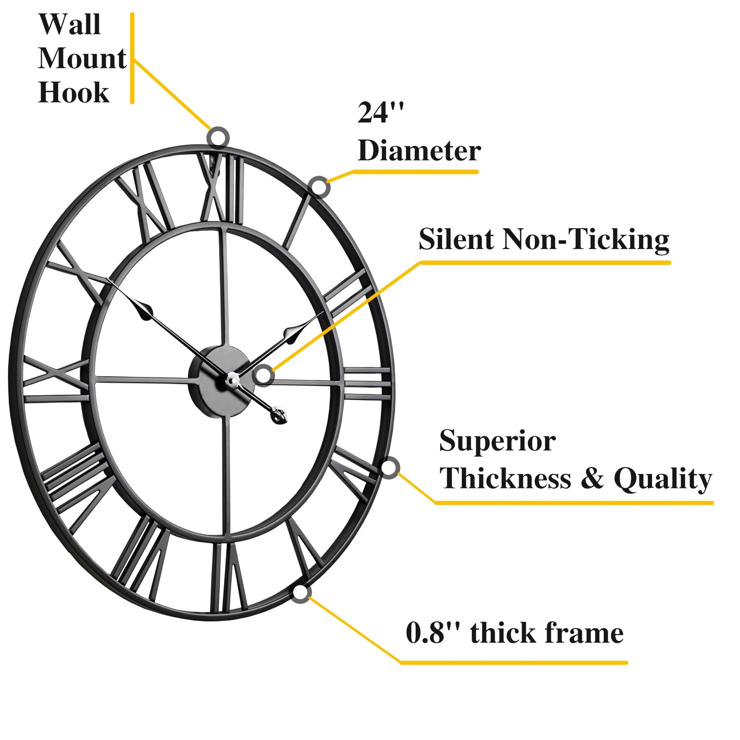 - [Ideal Unique Gift Idea ]-Perfect blend of modern & vintage home decoration, this large roman numeral 24 inch wall clock fits most decor whether french country, modern farmhouse, vintage traditional classic, shabby chic, Elegant Mid-century. It can be a great house warming gift,Mother's Day Gift,Father's Day Gift or Christmas Gifts