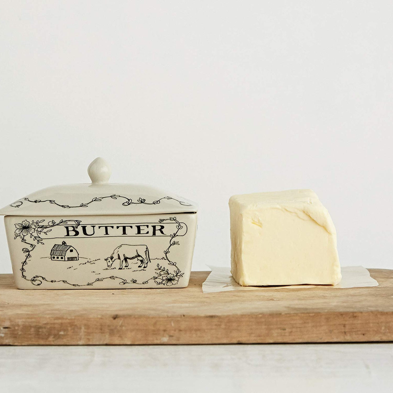 - Add a touch of antique charm to a kitchen counter, breakfast nook, or family dinner with this rustic butter dish