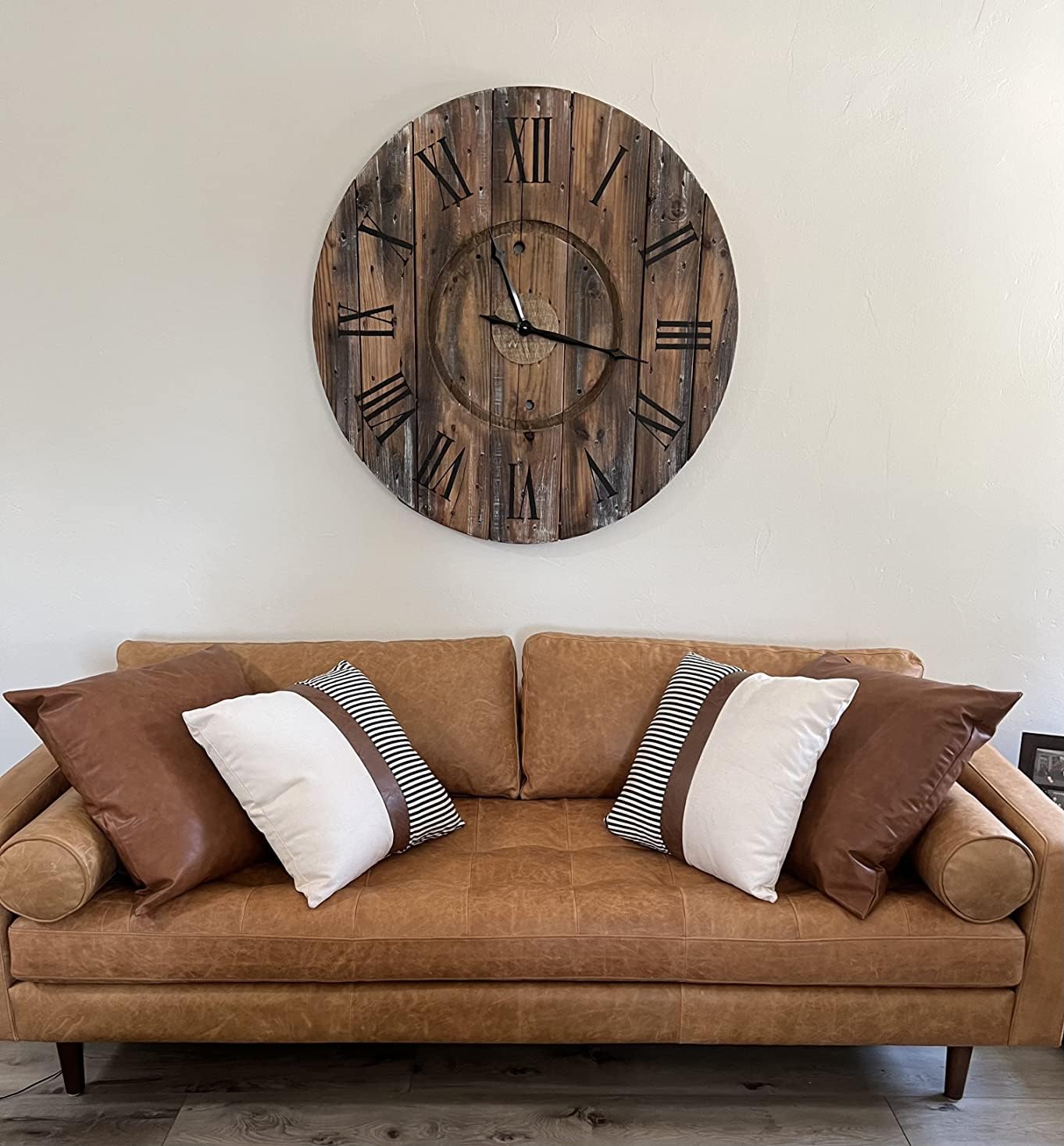 - Easy Match--farmhouse stripes bring classic flavor with modern simple brown leather, neutral color cotton linen fabric. No matter what style you are, it is easy to match,create a cozy atmosphere
