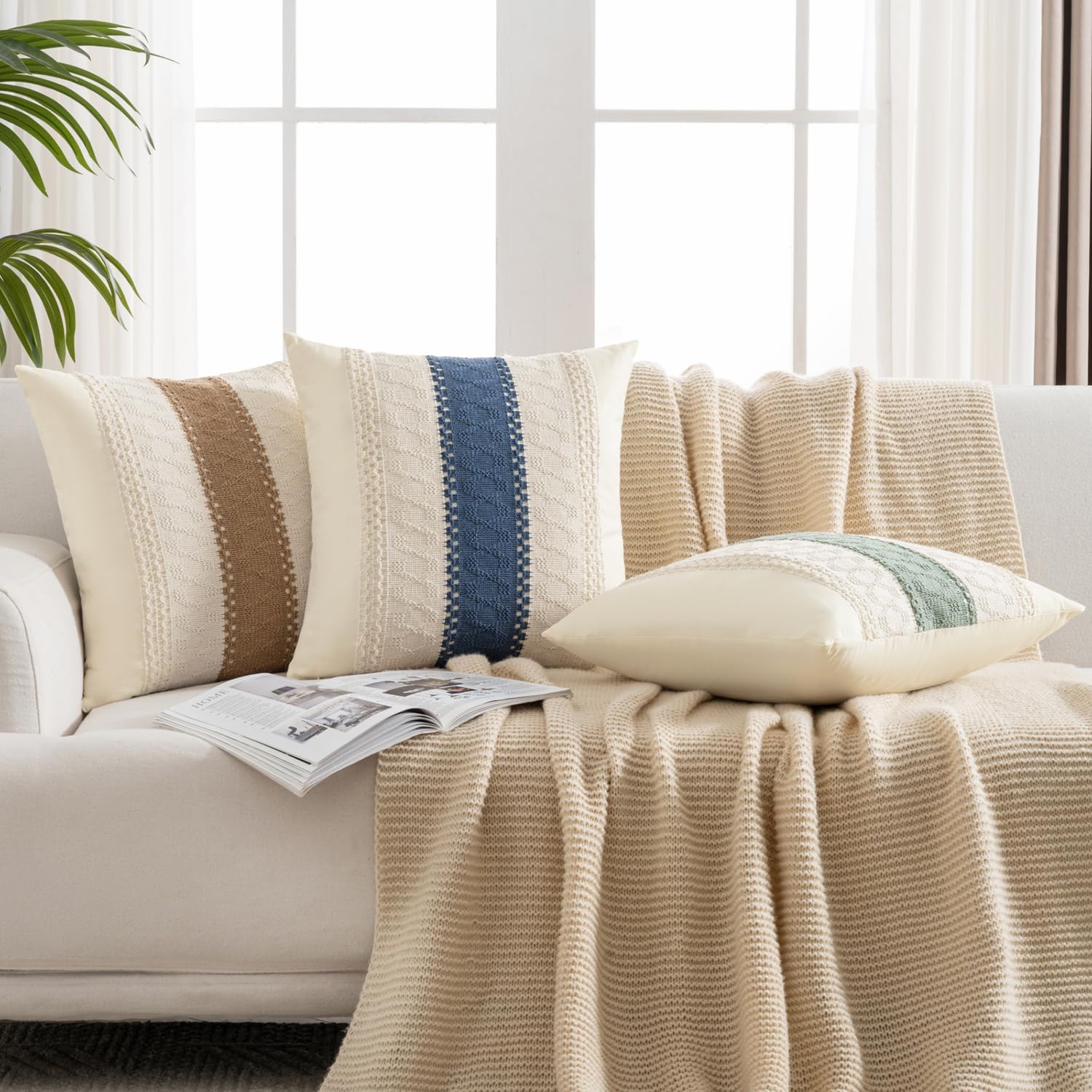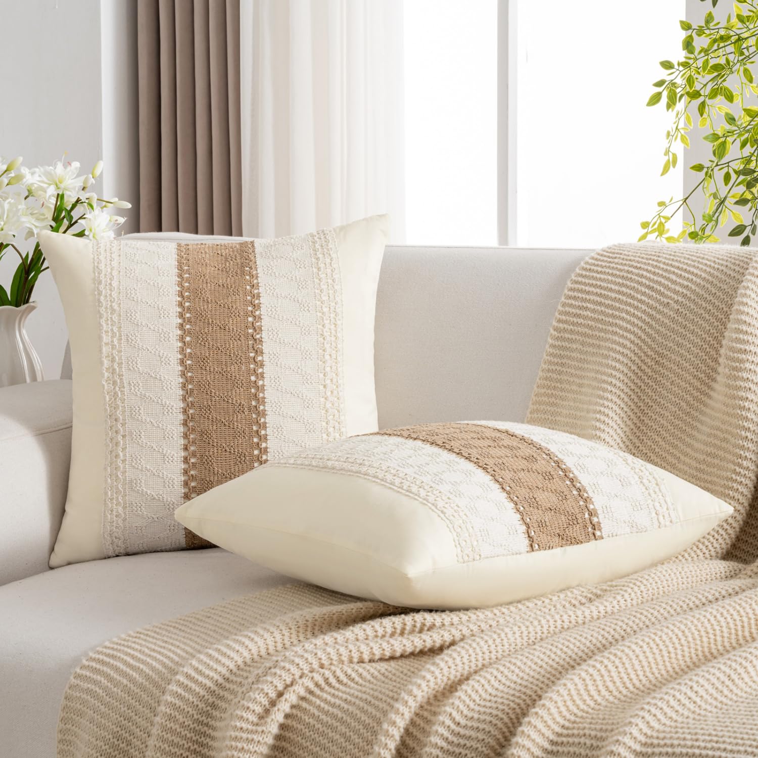 - Material: The main body of these boho throw pillow covers are crafted from cotton and the decorative part crafted from polyester. This fusion of soft and comfortable cotton with wrinkle-resistant and polyester achieves a perfect balance between comfort and durability.