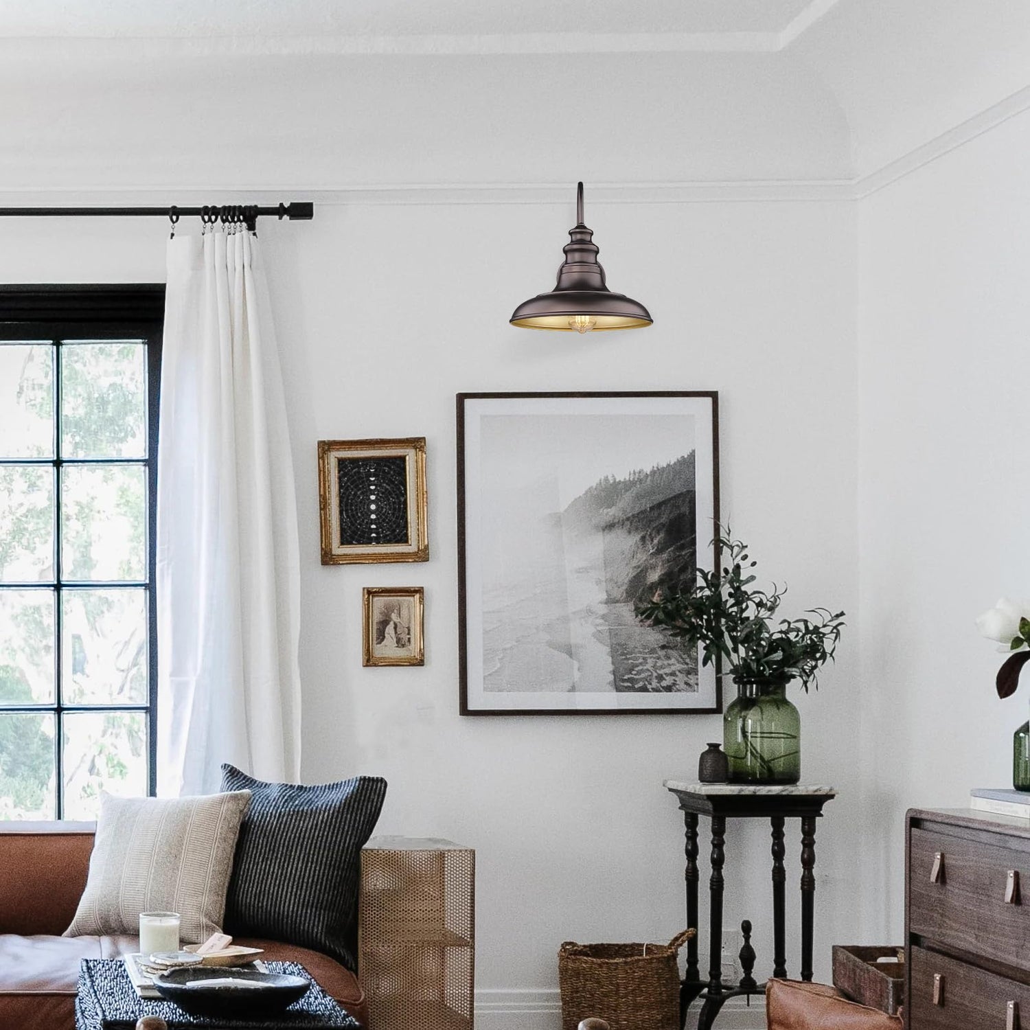 - 【Bulb Requirement & ETL Listed】:1x E26 base bulb-maximum 100W (Bulb not included). Compatible with LED bulbs or incandescent bulbs. The user-friendly open bottom design also makes it easier to replace the bulb.In addition, Outdoor barn lights Dimensions: Lampshade Diameter:12.28", 13.5" x 13.28"(L x H); Mounting Base diameter: 4.72", thickness: 1.10".
