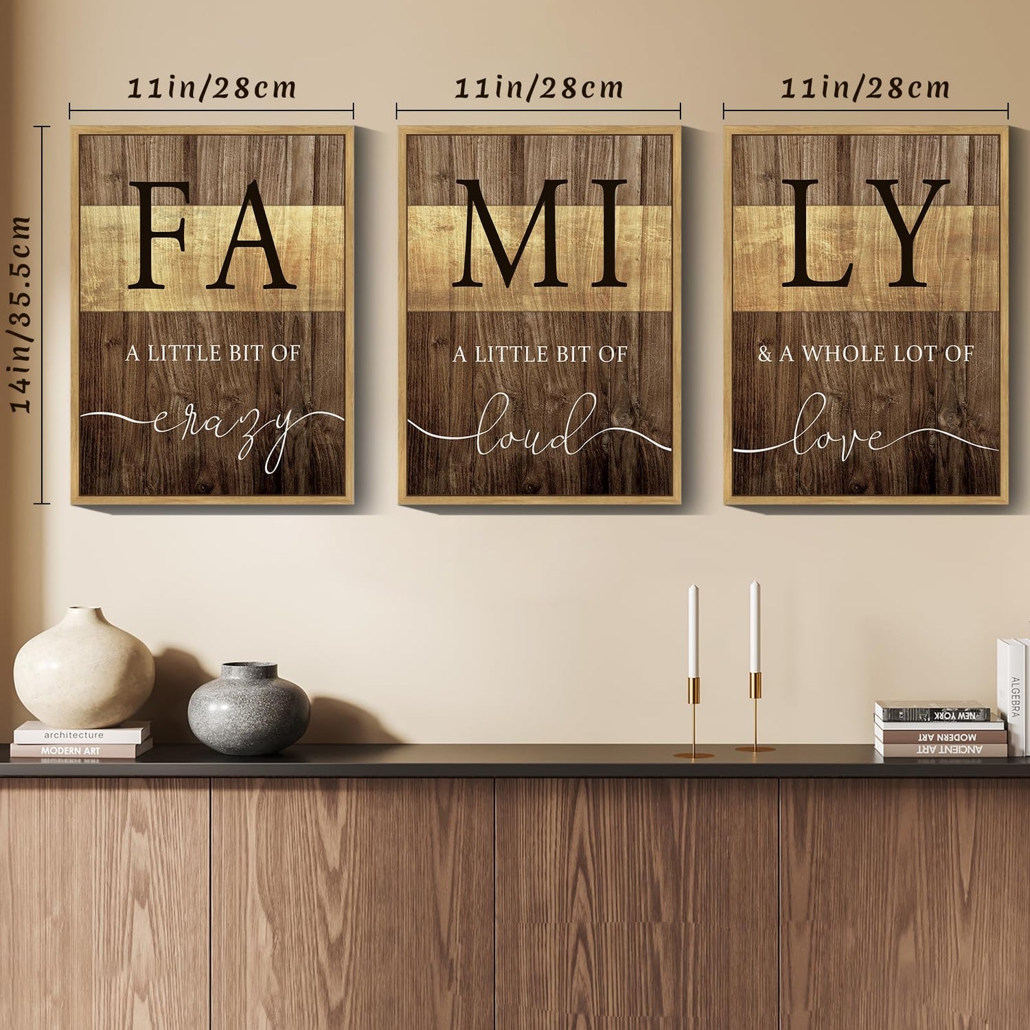 - READY TO HANG - Family positive sign print framed wall art features hanging grooves and comes with traceless nails for easy hanging. Totally 3 pieces and each piece is 11"x14".