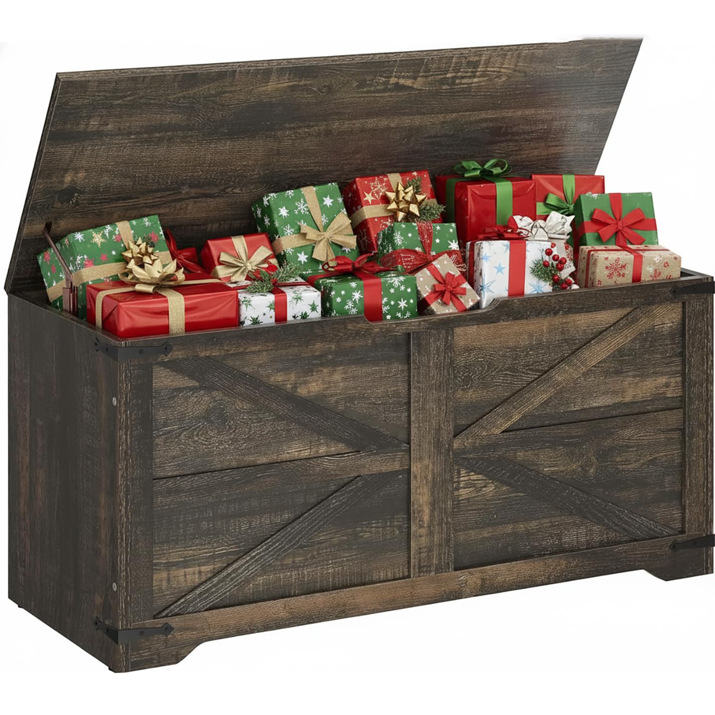 DWVO Storage Bench, Farmhouse Storage Chest with 2 Safety Hinges, 39.4" Retro Wooden Storage Organizer, Shoe Bench for Entryway, Bedroom, Living Room, Dark Rustic Oak