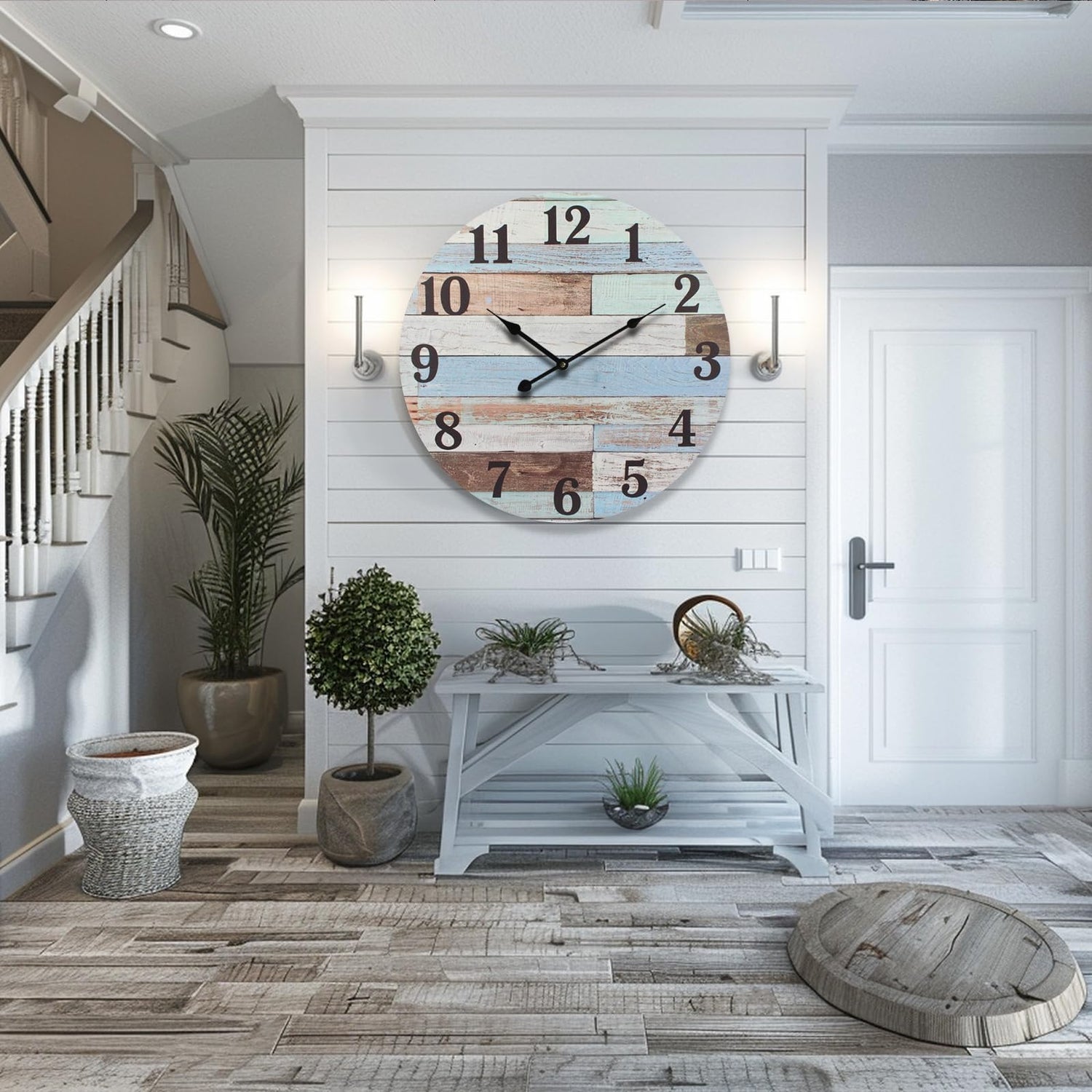 Eruner 24 Inch Blue Woodgrain Shiplap Wall Clocks for Living Room Decor, Large Farmhouse Wall Clock,Coastal Beach Nautical Style,House Warming Gifts New Home