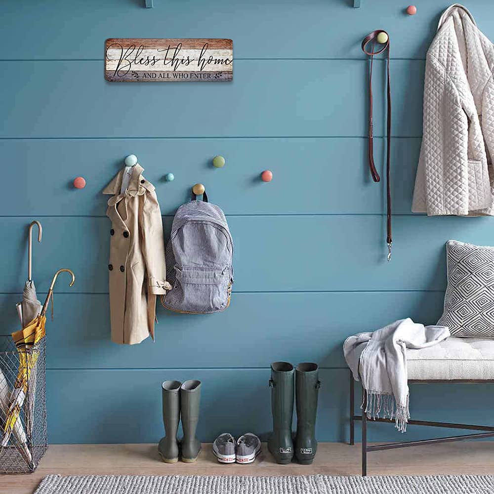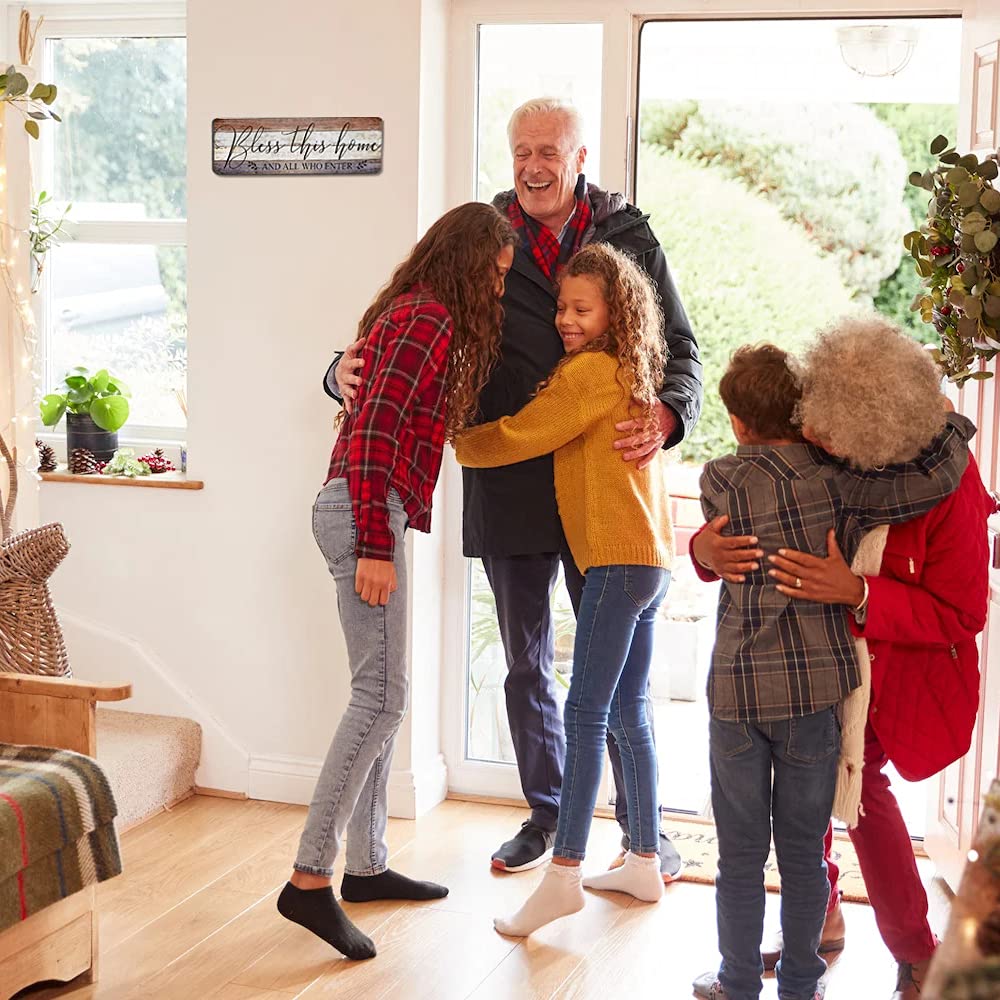 Farmhouse Family Wall Decor Rustic Wood Hanging Wall Art - Bless This Home And All Who Enter - Family Signs for Home Decor Inspirational Quotes for Hallway, Kitchen, Living Room 16"x5"