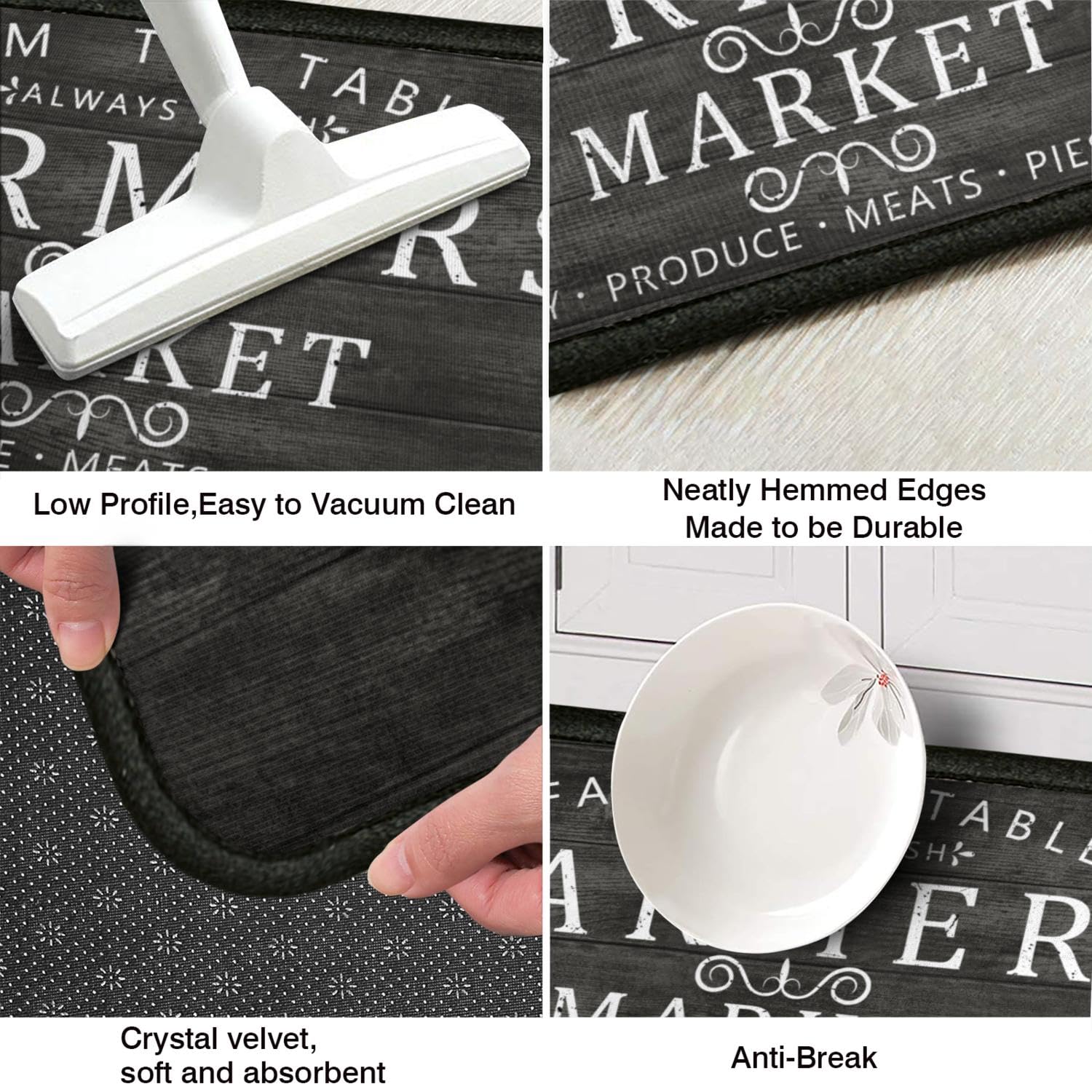 Farmhouse Kitchen Rugs Set of 2,Rustic Kitchen Rugs Farmhouse Style Mat Non-Slip Washable, Farmhouse Kitchen Decor Anti-Fatigue Floor Mat for Kitchen Sink Laundry Room, 17x30+17x47inch Black