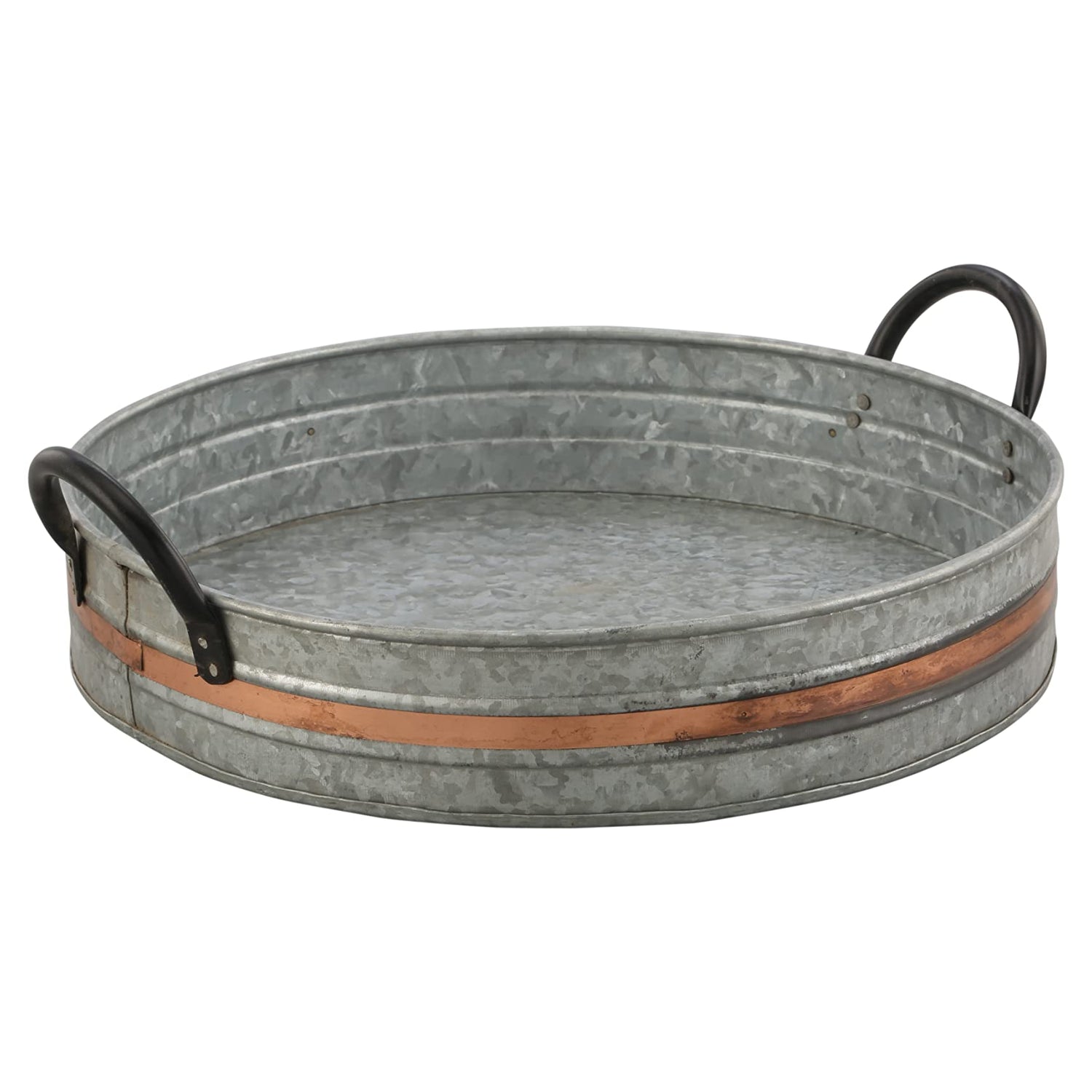 Galvanized Metal Serving Trays with Copper Strip and Iron Black Handles,Farmhouse Tray, Decorative Centerpiece for Coffee Table or Dining Table, Rustic Utility Trays for All Purpose, Round Trays…