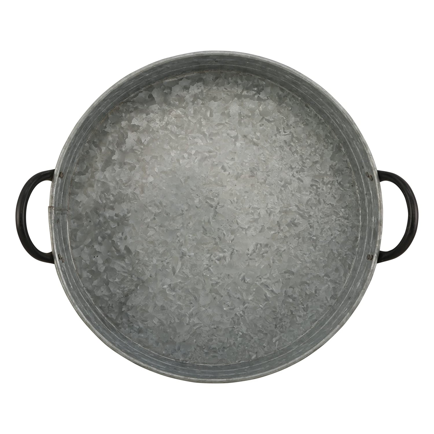 Details: Deconoor Galvanized Round Large Metal Serving Tray Vintage design for multiple purposes