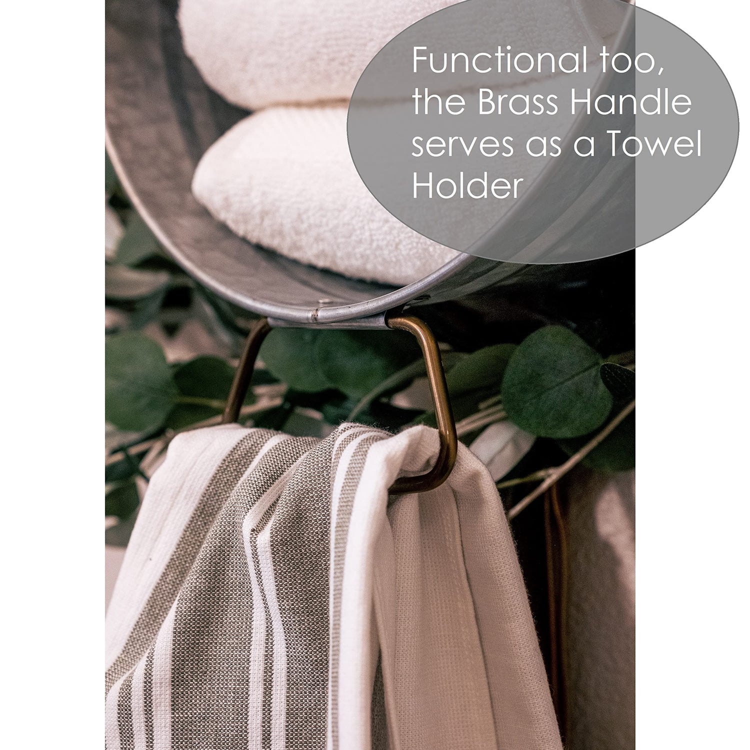 - Functional too, the brass tub handle serves as a towel holder. Sturdy and slender our .4mm thick metal wash tub is heavy duty galvanized décor.