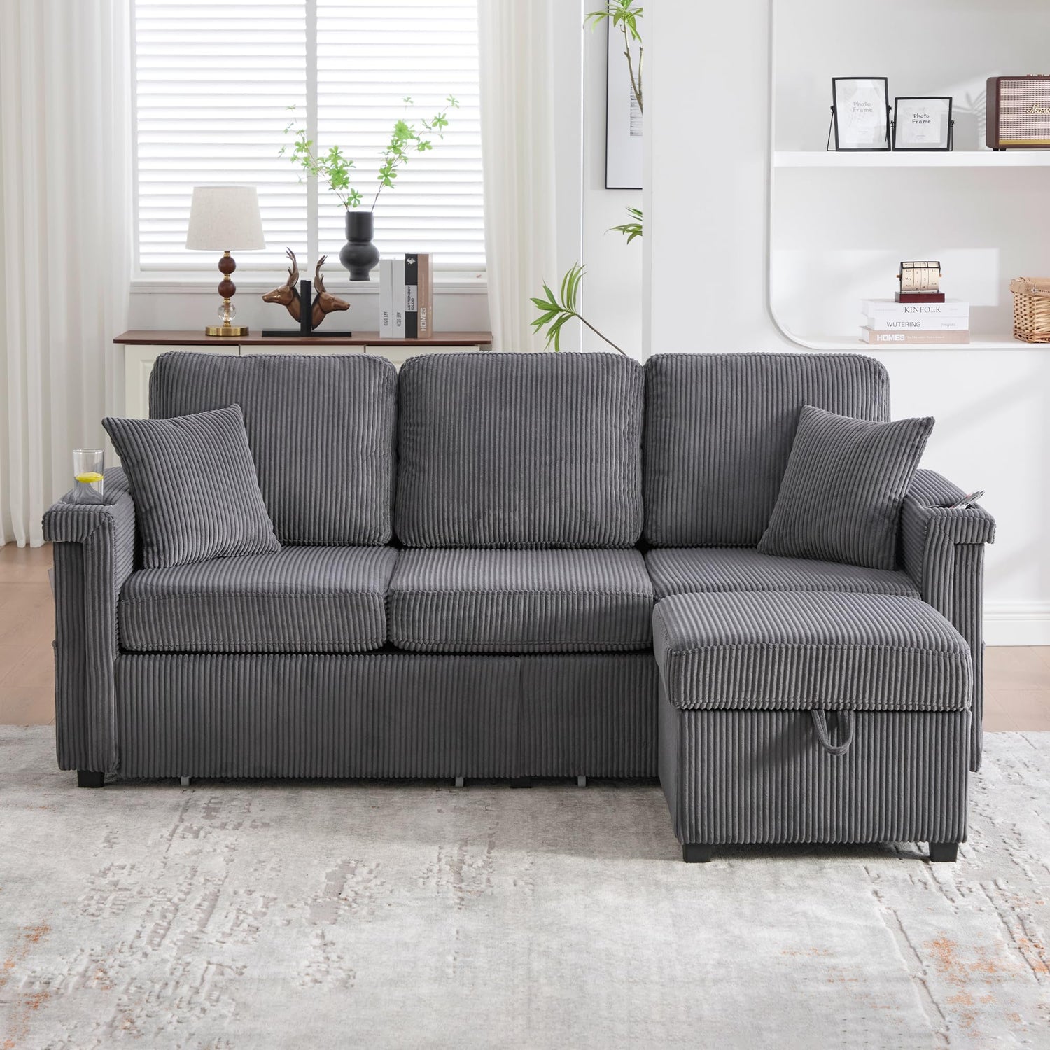 Details: Transform your living space with this versatile L-shaped sectional sofa that combines comfort, functionality and modern style. The plush corduroy upholstery offers a luxurious feel while being easy to maintain, perfect for everyday relaxation.