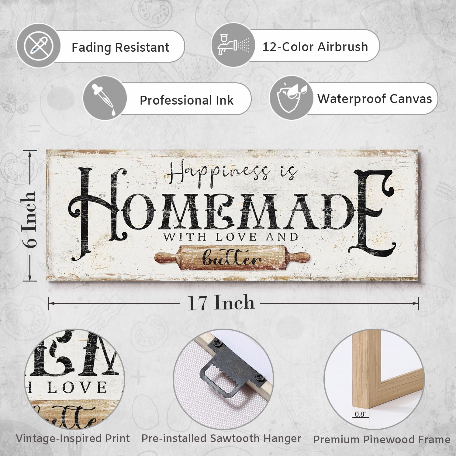 Happiness is Homemade with Love and Butter Sign Funny Kitchen Sign Decor for Counter Pantry Rustic Farmhouse Style Wall Décor Shabby Chic Family Wall Plaque Decoration Housewarming Gift, 6 x 17 Inch